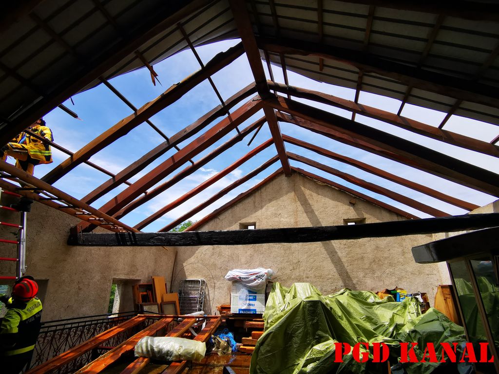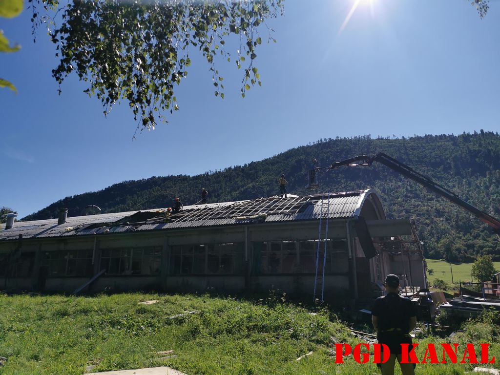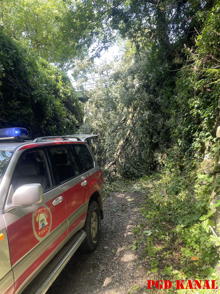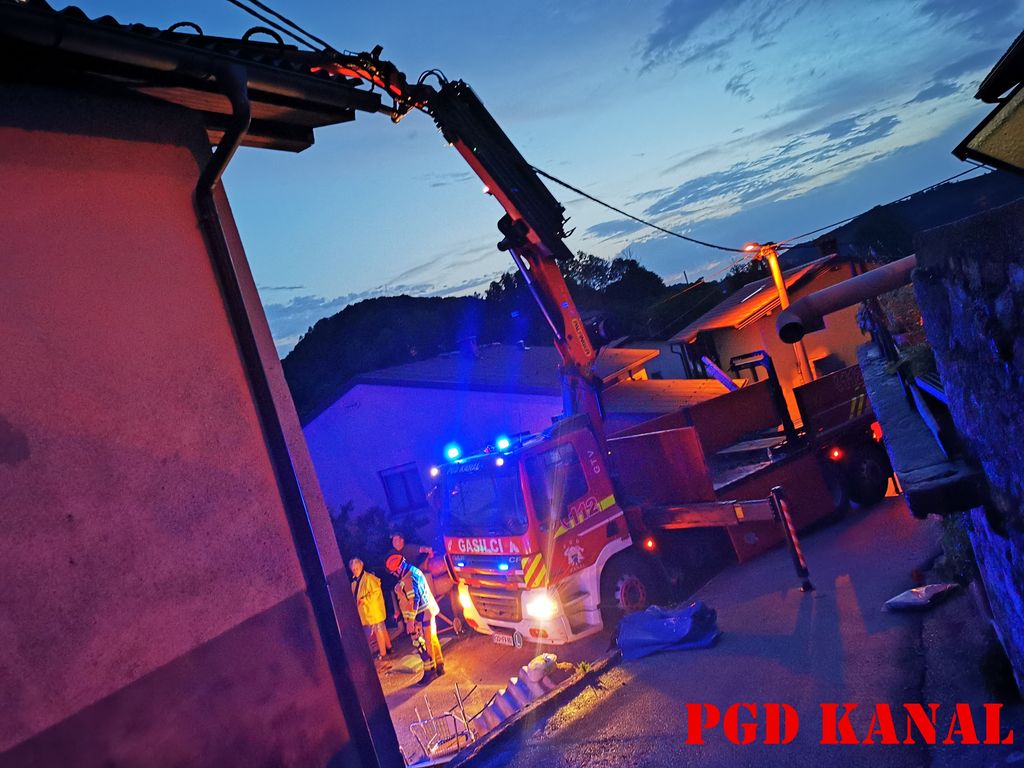 V ponedeljek 24.7. smo odstranili par novih padlih dreves na regionalni cesti Plave-Ročinj - Doblar. Naslednje jutro pa nas je zbudil pozivnik ob 5:10 za pomoč pri sanaciji objektov po neurju v Kostanjevici na Krasu in okolici. Izvozili smo z GVM-jem in avtodvigalom. Ravno po postavitvi dvigala in zavarovanju na strehi objekta pa nas je presenetila močna nevihta z velikimi sunki vetra zato smo se po hitrem postopku spustili z objekta in počakali, da gre mimo. Med čakanjem pa je ponovno zazvonil pozivnik. Tokrat je ta nevihta katera nas je presenetila prešla tudi našo občino in smo tako ob 8:00 zapustili Kostanjevico in so podali domov pomagat na naš teren. Bilo je veliko podrtih dreves in nekaj odkritih objektov (gospodarski objekt v Krajcu in Levpi, ter stanovanjski objekti v Kambreškem, Ročinju in Bodrežu), katere smo sanirali in pokrili z platni. Na pomoč so nam priskočili gasilci PGD Kobarid, PGD Breginj, PGD Avče in PIGD Salonit Anhovo. Na terenu so sodelovali tudi sekači, člani CZ Kanal, pogodbeniki CZ (podjetniki s stroji) ...