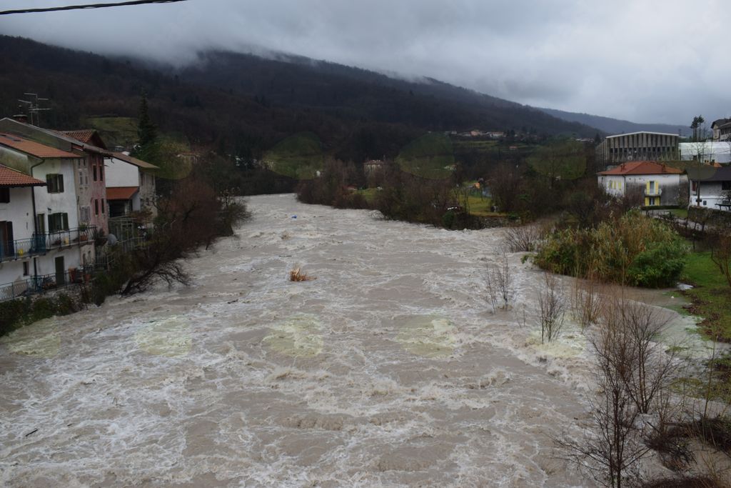Reka Soča bo danes še naraščala in v zgornjem in srednjem toku poplavljala.