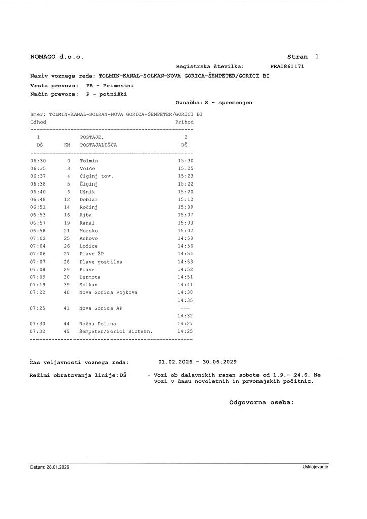 Sporočamo vam, da bo NOMAGO z dnem 1.2. oz. 02.02.2026 ponovno začel izvajali linijo po vaseh in sicer bo le ta zajemala Anhovo (pri bivšem Merkatorju), Ložice, Plave ŽP, ter postajališče Plave pri gostilni (pri mostu).