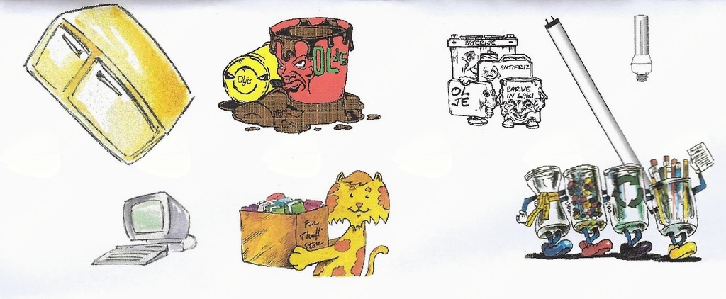 barve, laki, črnila, lepila, smole, detergenti, čistila, kozmetična in pralna sredstva, topila, razredčila, kisline, baze, fotokemikalije, pesticidi, biocidi, odpadna zdravila, čistilna, kozmetična in pralna sredstava, baterije in akumulatorje,onesnaženo embalažo iz lesa, stekla, plastike, papirja in kovin , radije, TV, računalnike, elektronsko opremo in fluorescentne cevi.