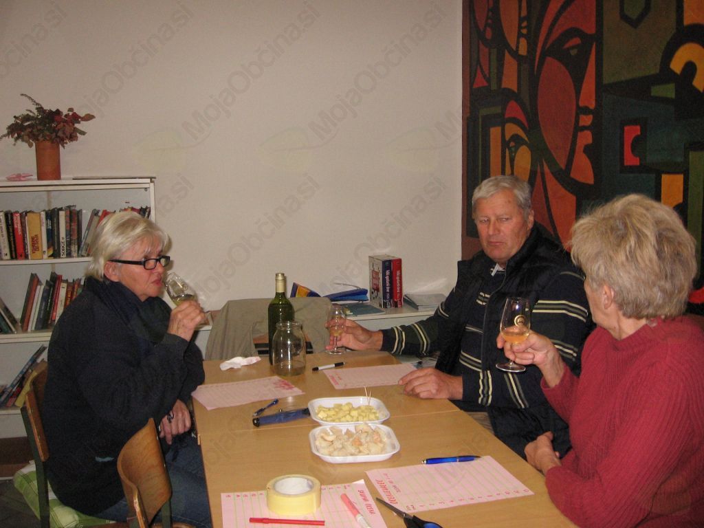 V torek po martinovem smo se zbrali v Medgeneracijskem centru Pri Tinci, da bi ocenili in pokusili vzorce novega vina, ki so jih prinesli domači proizvajalci. Zbralo se je štirinajst vzorcev različnih belih in črnih vin.