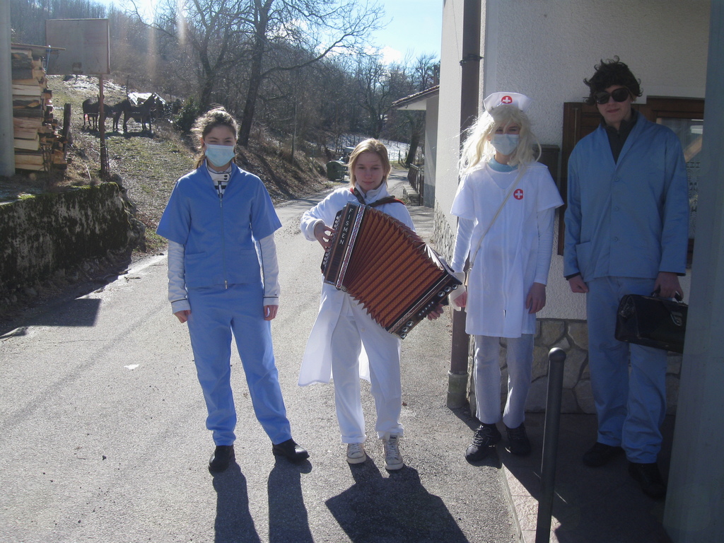 Dve najmlajši skupini, večinoma kavbojci, čarovnice, gusarke, Indijanke, sta bili iz Levpe in Seniškega Brega. Obe sta obiskali v več urah oba konca krajevne skupnosti. Poleg njih sta bili še dve skupini mladih, zdravniki ter slovenska in hrvaška rokometna reprezentanca s tradicionalnim vozom. Povedali so, da o tematiki letošnjega pusta niso preveč razmišljali, poudarili so tudi, da je priprava voza velik finančni zalogaj.