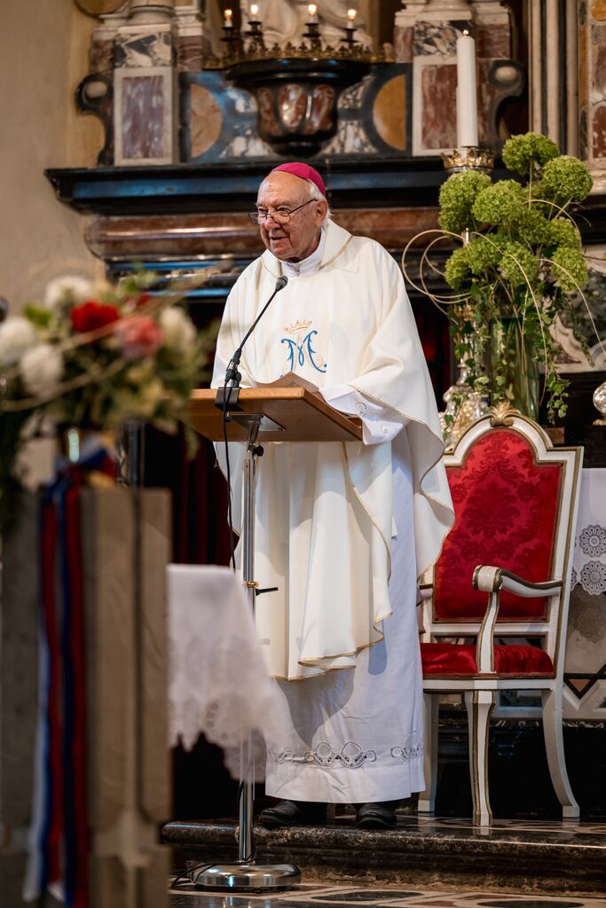 Praznovanje na Marijinem Celju se je v soboto začelo s sveto mašo, ki jo je vodil upokojeni koprski škof msgr. Jurij Bizjak. Domači zbor, ki je prepeval med mašo, je izvedel tudi dve Bratuževi pesmi.