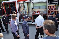 Po prihodu na šolsko igrišče je sledil prevzem novega gasilskega vozila GCGP-1 (gasilska cisterna za gozdne požare). Župan Maffi je ključe vozila podelil poveljniku PGD Kanal Berlotu,  ta pa jih je predal skrbniku vozila Markiču. Po predaji so si prisotni lahko ogledali vozilo.