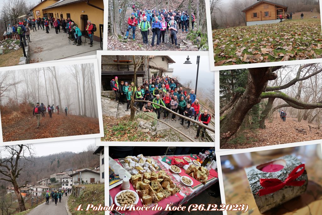Leto se počasi zaključuje in z njim prihaja tudi čas tradicionalnega Pohoda od Koče do Koče, ki smo ga izpeljali v torek 26. decembra. Namen pohoda je prijateljske narave med dvema Planinskima društvoma, Pd Valentin Stanič iz Kanala ob Soči z svojim Planinskim domom pod Ježo in Cai Val Natisone z sedežem v Špetru z svojo Baito pod Svetim Martinom. Letos se nas je kar 52 zbralo v Planinskem domu pod Ježo, po uvodnem pozdravu predstavnikov društev smo krenili na pot, najprej smo se spustili do izvira mejne reke Idrije od kjer smo nadaljevali do prve vasice v Benečiji, Brega, po cesti smo se sprehodili mimo zaselkov Zuodar in Trinko do Gorenje Dreke, kjer nas je Gregorijeva družina sprejela in pogostila. Po krajšem odmoru in fotografiranju je sledil vzpon do Livških Raven, ki so najvišja točka pohoda, tu so nas pričakali prijazni domačini in nas postregli s tekočimi, domačimi dobrotami. Nadaljevali smo mimo vrha z imenom Škarje, prevala Ključ, čakal nas je še zadnji vzpon pohoda, vzpon na 987 metrov visok Sveti Martin, pod katerim stoji cerkvica z istim imenom. Počasi smo se bližali cilju pohoda Baiti pod Svetim Martinom. Člani Cai Val Natisone so nas sprejeli v njihovi koči, postregli z izvrstno pašto in drugimi dobrotami, za kar jim gredo vse pohvale. Na koncu so vse Slovenske pohodnike obdarili z majhno pozornostjo z namenom ohranjanja čez mejnega prijateljstva, hvala. Pd Valentin Stanič Kanal se zahvaljuje vsem za udeležbo in vsem, ki so kakorkoli pripomogli pri uspešni organizaciji in izvedbi 4. Tradicionalnega pohoda od Koče do Koče.