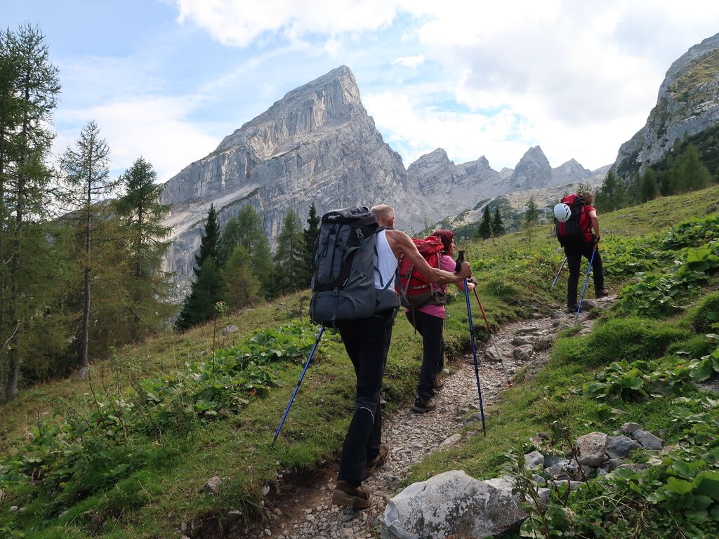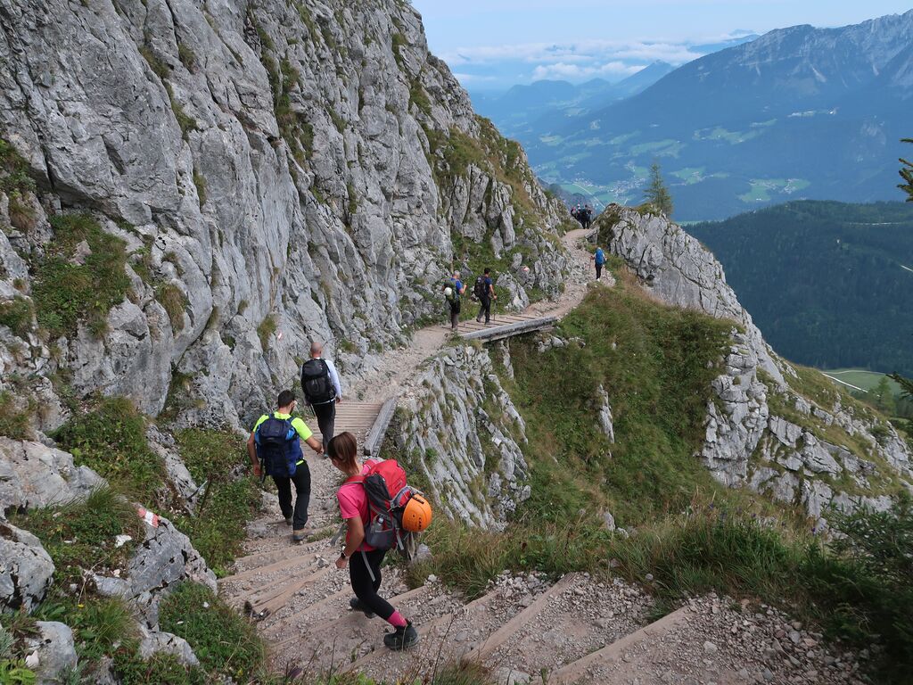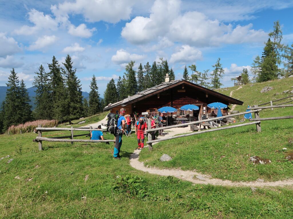 Naš planinski izlet je bil sicer dvodneven, izkoristili smo možnost, ki je Stanič ni imel, namreč prespati v koči Watzmannhaus (1930 m), na katere mestu je bilo prvo zavetišče postavljeno že leta 1888 in je okrog tri ure oddaljena od najvišjega vrha. V prvem dnevu je bilo tako potrebno premagati 1200 metrov višinske razlike, nekateri v predpisanih štirih urah, ostali so časovnico nekoliko bolj raztegnili, vendar ne na več kot pet ur. Čas nas ni priganjal, zato je bil tudi postanek na nižjeležeči planini, kjer dandanes teče več piva kot mleka, lahko daljši in korenitejši.