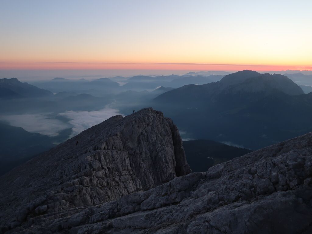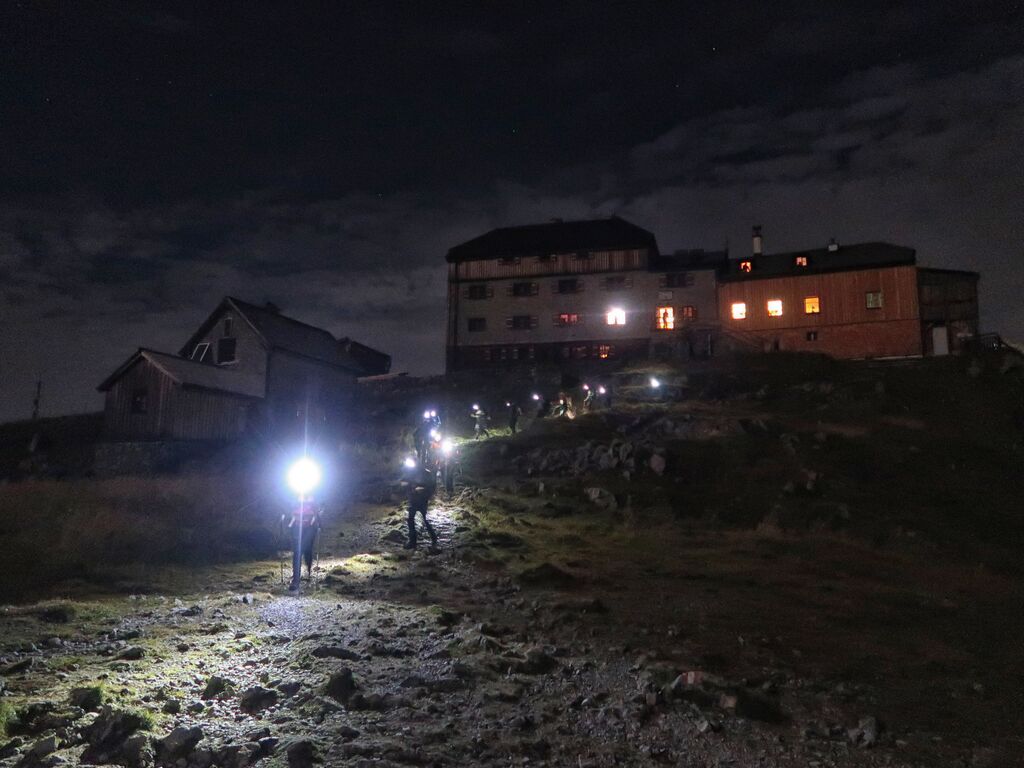 Tisto jutro smo bili eni prvih, ki so se podali proti Hochecku, prvemu vrhu, pred našo kolono je svetilo le še nekaj lučk, so nas pa med potjo prehiteli trije mladci z mladenko, ki so morebiti dlje pospali, a so jih mlajše noge tudi hitreje nesle proti vrhu. Tempo hoje je bil drugi dan nekoliko strožji, saj se je bilo treba pravočasno vrniti v dolino, poleg tega pa so najslabše napovedi kazale dež že ob 11. uri dopoldne. Tudi zato smo Hocheck osvojili v praktično natanko dveh urah, kakršen je tudi standard, in ravno v pravem času za sončni vzhod, ki je