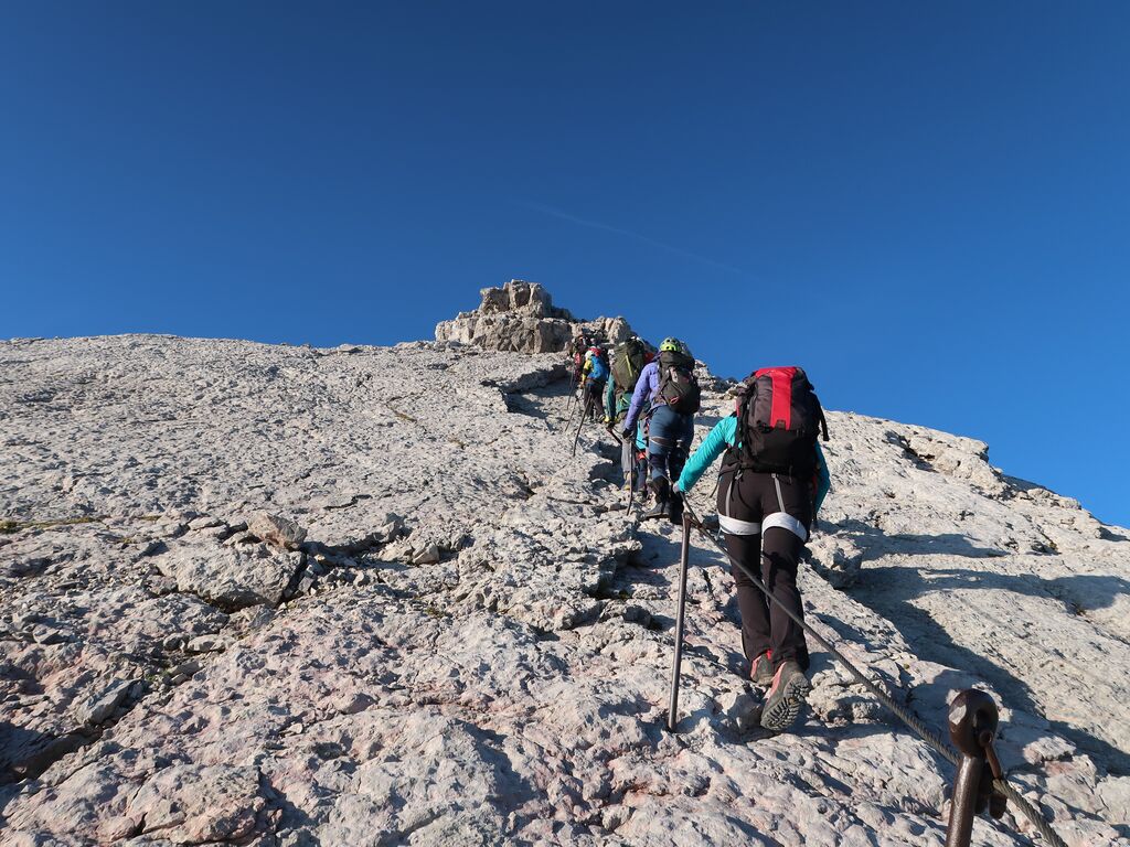 Prečenje med tem in najvišjim vrhom je sedaj seveda primerno zavarovano in vsaj malo izkušenemu planincu ne predstavlja pretirane težave. Zaradi skoraj romarskega obiskovanja teh vrhov, ki jih lahko primerjamo z našim Triglavom, so še najbolj nevarni od čevljev spolirani kamni, ki resnično ponazarjajo latinski rek »kapljica izdolbe kamen« oz. veliko število drobnih sprememb vodi do