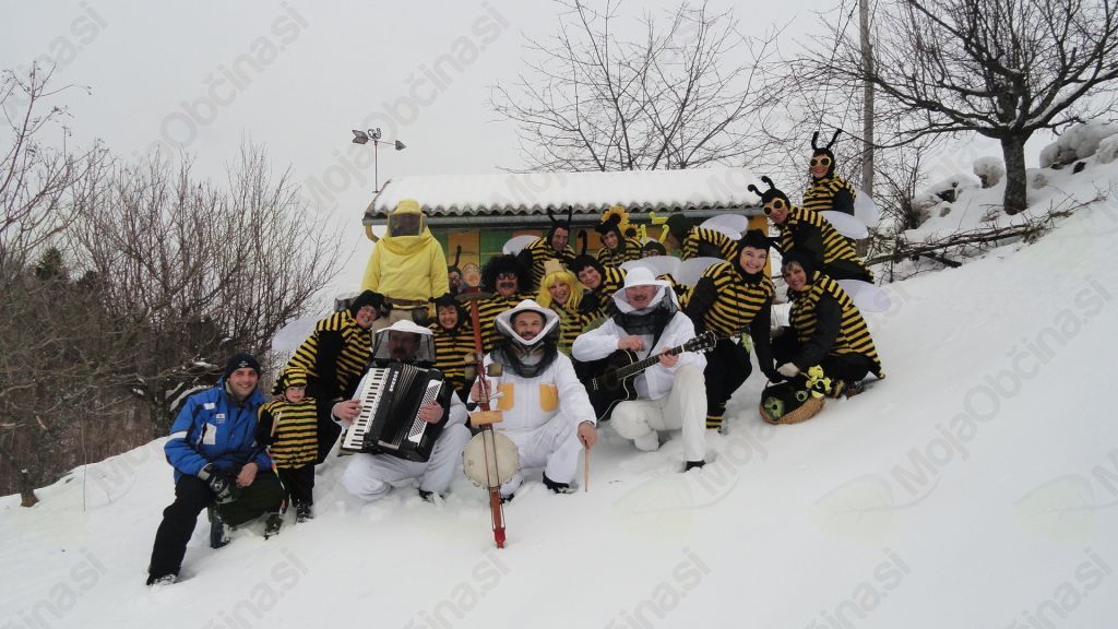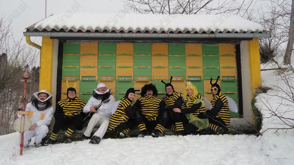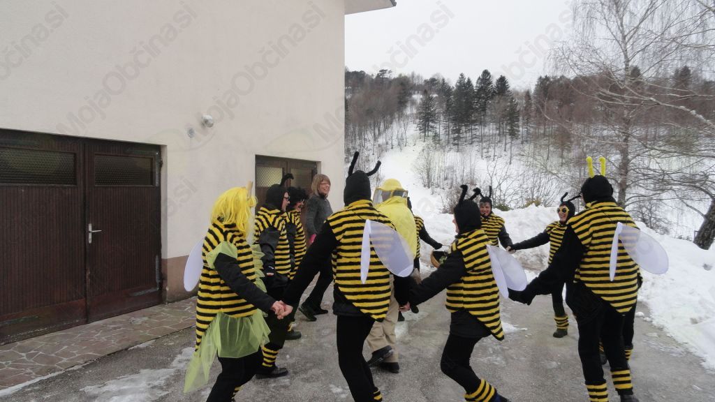 Po kalskih vaseh so zimo odganjale čebele. Na pustno soboto so se v kostume delovnih žuželk preoblekli člani Folklorne skupine Kal nad Kanalom, ter v družbi snežink veselo zaplesali s krajani.