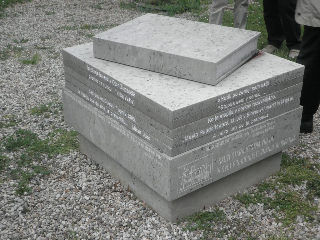 Pot nas je vodila najprej v prestolnico Dolenjske, Novo mesto, kjer nas je pričakal gospod dr. Janez Gabrijelčič in nas prijazno povabil na ogled rastoče knjige v park Rastoče knjige Novo mesto. Da, prav ste prebrali »rastoče knjige«. Knjiga, sestavljena iz kamnitih plošč, se vsako leto poviša za eno ploščo, v katero so vklesane pomembne misli znanih pesnikov, pisateljev, politikov … o pomenu knjige, znanja, sožitja, izobraževanja, osebne in skupne rasti. Dr. Janez Gabrijelčič, ki je po očetu Primorec, je pravzaprav idejni oče vseslovenskega projekta in je o rastoči knjigi zapisal: