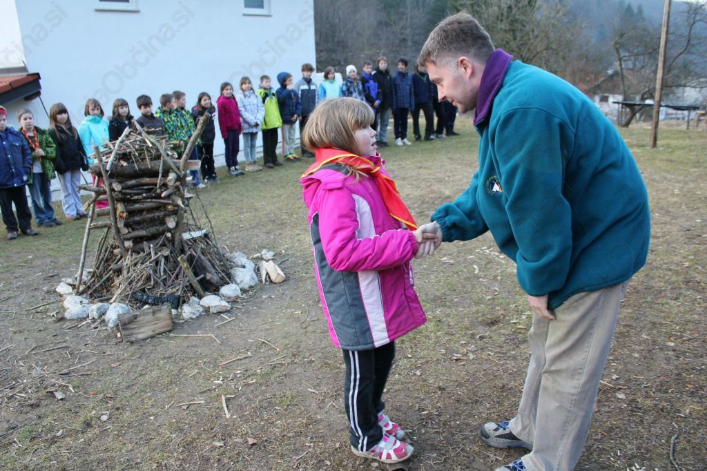 Naslednji dan, po krepčilnem zajtrku, smo se razdelili v dve skupini. Starejši taborniki, gozdovniki in gozdovnice (GG), so poiskati kurivo ter postavili ogenj, natančneje apollo Medtem pa so se mlajši taborniki, medvedki in čebelice (MČ), učili postavljati bivak iz dveh šotork. Dopoldne smo zaključili z obešanjem ptičjih pogač. Po kosilu in popoldanskem »počitku« smo se zopet razdelili v dve skupini. MČ-ji so se z našim načelnikom Danijem sprehodili po gozdu in opazovali prebujanje narave in drevesa. Medtem pa so se GGji učili o topografiji in orientaciji, kasneje pa so pomagali pri izdelavi kažipota. Popoldne smo zaključili z zaprisego ter podelitvijo rutk novim tabornikom in tistim, ki so si s svojo aktivnostjo to prislužili. Po večerji smo zakurili ogenj, ki so ga GG-ji dopoldne postavili, ter zapeli ob njem. Na žerjavici smo tudi pripravili banane s čokolado, ki pa tokrat na žalost vseh, niso bile tako dobre, kot običajno. Nato pa smo se vsi zbrali v topli jedilnici, kjer smo odigrali kviz z vprašanji v povezavi s taborništvom, astronomijo in drugimi sorodnimi temami. Vsi smo bili nato tako utrujeni, da smo se z največjim veseljem zavili v spalne vreče ter zaspali.