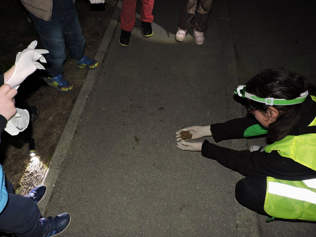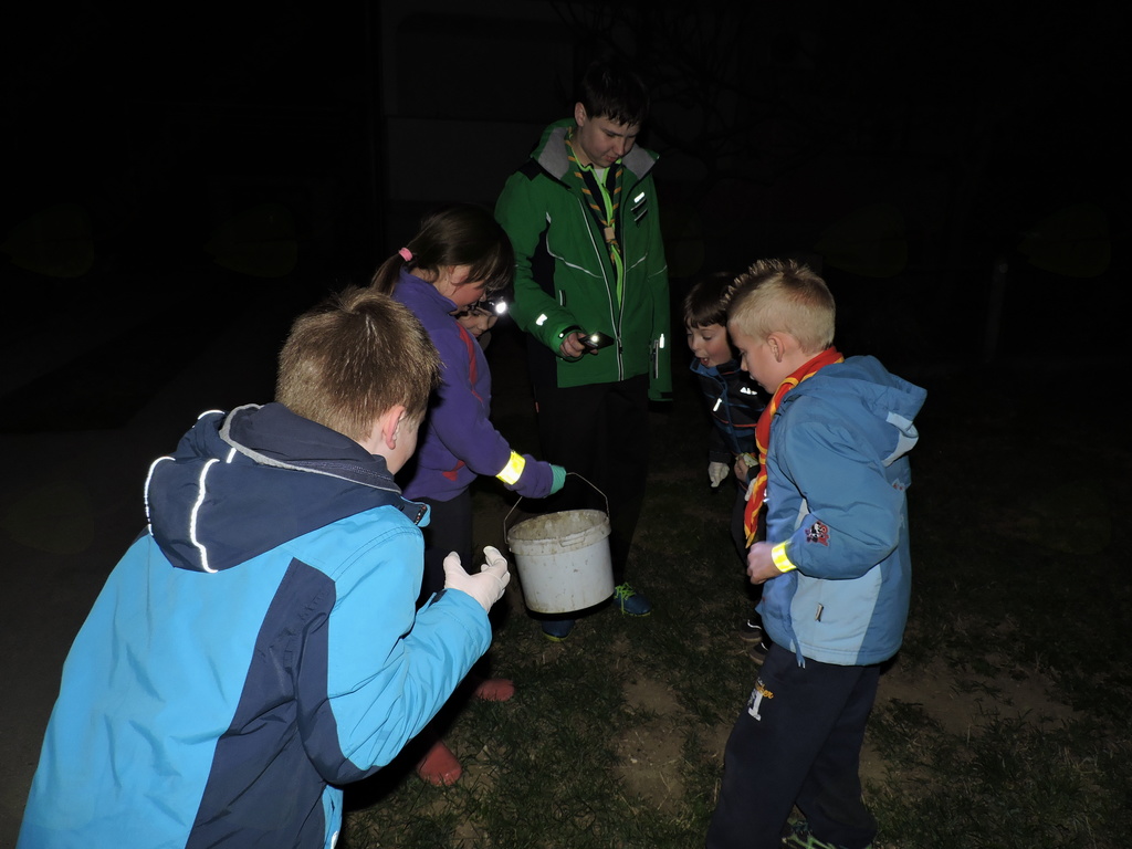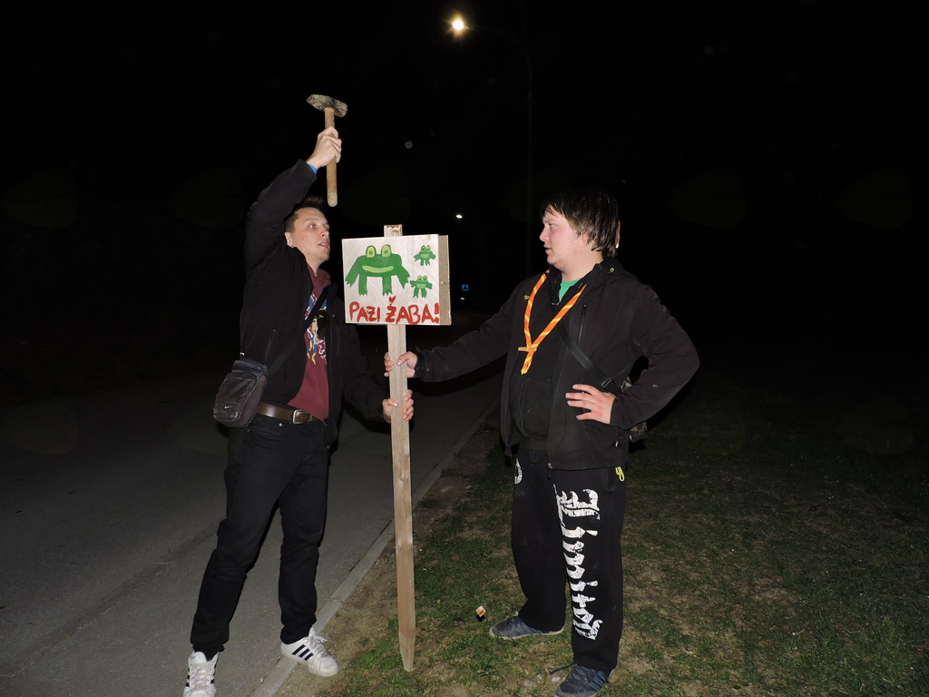 Žabe so ogrožena vrsta, zato smo se taborniki odločili, da jim pomagamo varno čez cesto. V marcu smo štiri večere namenili reševanju žab. Otroci so pri tem zelo uživali.