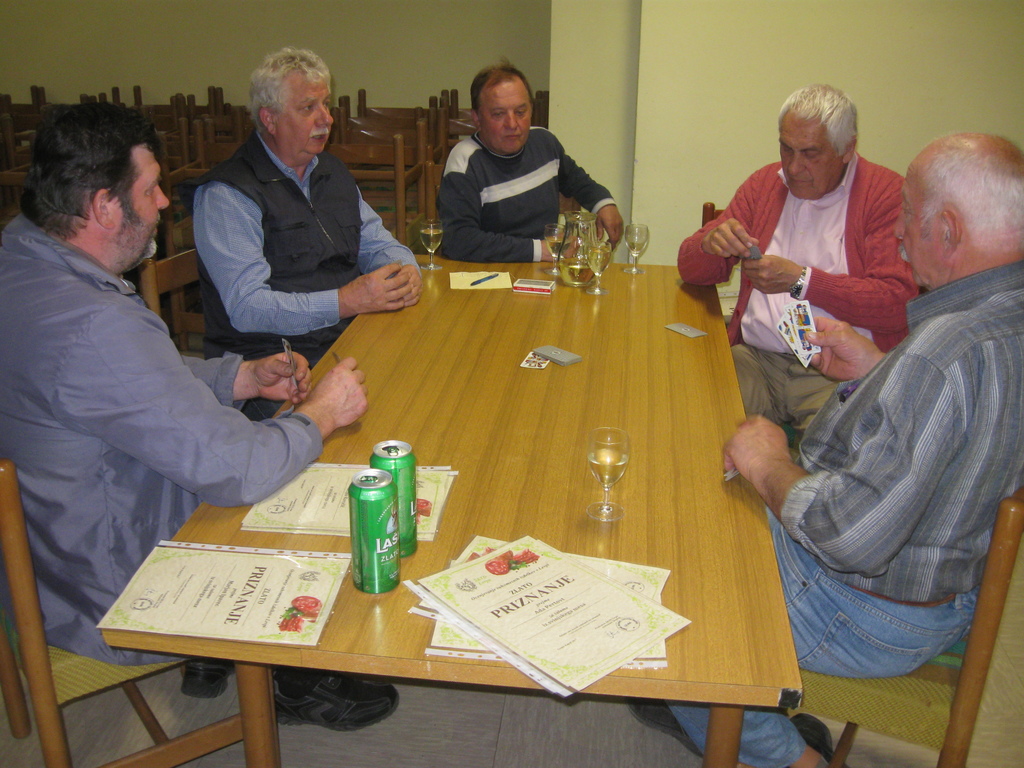 Po ocenjevanju smo si s kozarcem pijače nazdravili, izmenjali izkušnje in družili naprej ob igranju kart.