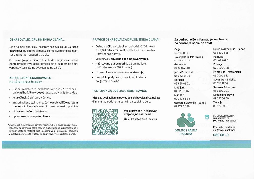 1.7.2025 – dolgotrajna oskrba na domu in dodatni pravici: e-oskrba in storitve za krepitev in ohranjanje samostojnosti;