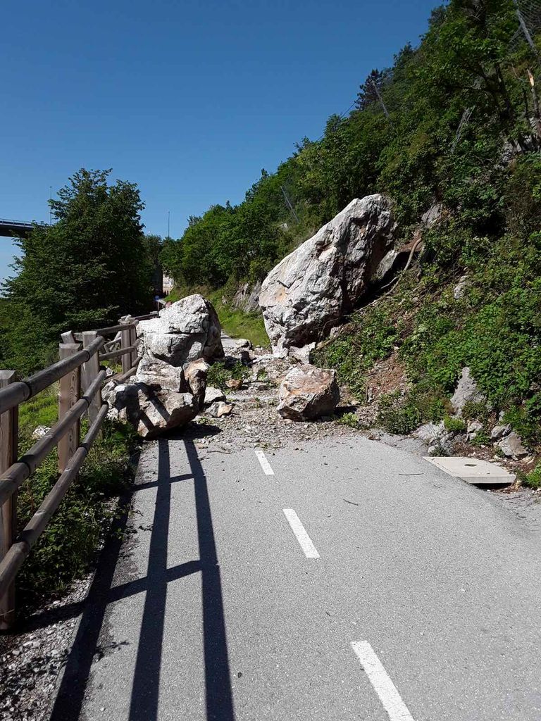 Ministrstvo za infrastrukturo, Direkcija RS za infrastrukturo obvešča, da je nad kolesarsko potjo Solkan-Plave po včerajšnjem močnejšem deževju prišlo do podora, na pot je padlo več skal. Zaradi nevarnosti porušitve dodatnega materiala je koncesionar zaprl kolesarsko pot. Ocenjeno je, da je žarišče podora ca 200 metrov visoko. Lokacijo si bo ogledala geologinja, ki bo podala naslednje usmeritve glede varnosti oziroma odprtja kolesarske poti. Več informacij o podoru bo na voljo v prihodnjih dneh.