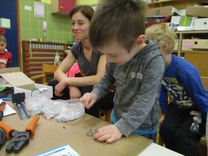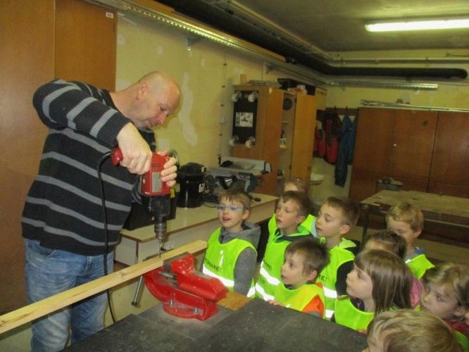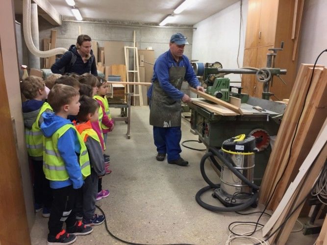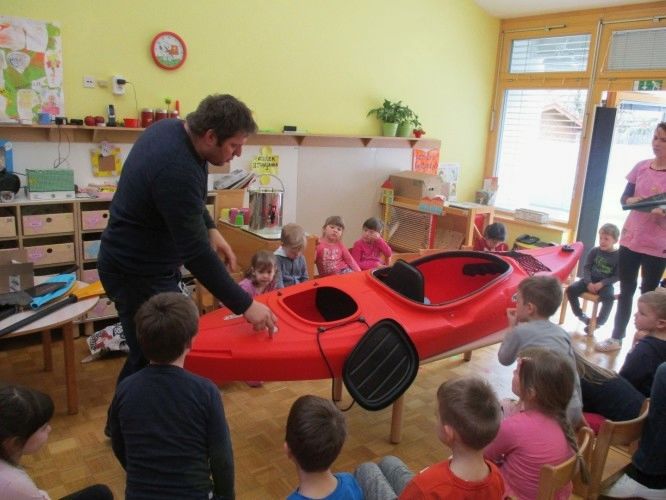 Prva je v vrtec prišla mama Nataša Ravnik Franzoni in nam prikazala, kako sestavljajo prav posebne luči, ki se uporabljajo na naftnih ploščadih in jih zato z ladjami pošiljajo na razne konce sveta. Že naslednji dan smo očetu Gorazdu Černuta pomagali v vrtec prinesti kajak in vesla znamke Prijon in si podrobno ogledali njihovo izdelavo ter se kar v igralnici usedli vanj in poskusili veslati. Obljubili pa smo mu, da bomo enkrat zaveslali tudi po Soči. Nismo pozabili na osebo, ki nas kdaj pa kdaj polepša, to je frizerka in mama Anja Jug. Kot se edino spodobi, smo odšli v njen frizerski salon, kjer smo jo opazovali, kako je strankam umivala in sušila lase, od nje pa tudi mi nismo odšli brez kitk ali barvnega pramena. Seveda imamo v vrtcu tudi vzdrževalca Leona Jerončiča, ki nas je povabil v šolsko delavnico in nam pokazal stroje, ki žagajo, brusijo, pihajo, vrtajo in so nasploh zelo zanimivi.