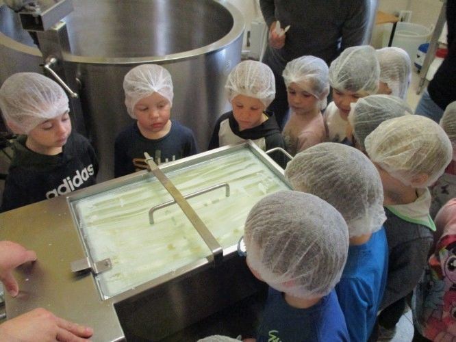 V sklopu poklicev smo imeli tudi pravi izlet, saj smo se z vlakom peljali v Kanal, kjer smo v sirarnici Karmen pomagali narediti maslo ter imeli pravo malo pokušino mlečnih izdelkov. Sprehodili smo se tudi do Gorenje vasi, saj smo si želeli ogledati tudi, kaj počne mizar. To in še veliko več nam je pokazal Simeon Kodelja. Nadaljevali smo v vrtcu, kamor smo za eno dopoldne povabili tri none slikarke, in sicer: Heleno Stanič, Vando Colja in Mirjam Morenčič. Nekaj svojih umetnin so prinesle s seboj, nekaj pa so jih ustvarjale skupaj z otroki v vrtcu in pri tem spoznale kar nekaj bodočih slikark in slikarjev. V nadaljevanju nas je obiskal tudi oče Marko Bavdaž iz prodajalne gradbenega materiala Apia, s katerim smo se pogovorili o službi prodajalca in skupaj gradili hiše iz kock. Kot zadnjega smo spoznali poklic kuharja, ki nam ga je predstavil kar kuhar iz vrtca, Primoža Kumar, s katerim smo si pripravili kosilo, ki je bilo zato tisti dan še posebej slastno.