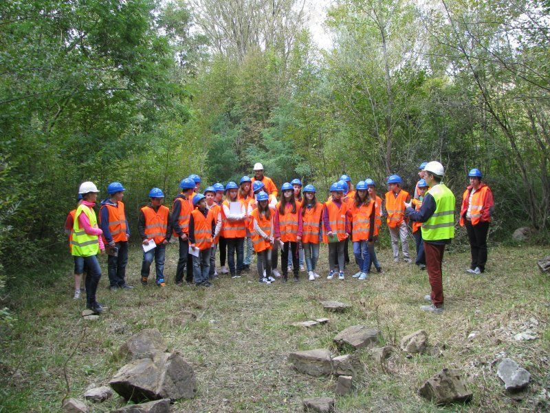 Sledil je zanimiv del, ko so nas opremili z čeladami in fluorescentnimi jopiči, saj smo se odpravili na ogled kamnoloma. Videti smo bili kot palčki, ki gredo v rudnik. Pot z avtobusom nas je vodila skozi ovinke kamnolomov, a na poti nas je pričakal tudi malo grd prizor, več tisoč črnih pnevmatik je čakalo na sežig. Z avtobusa smo izstopili, ko smo prispeli v opuščen kamnolom Lastivnica.