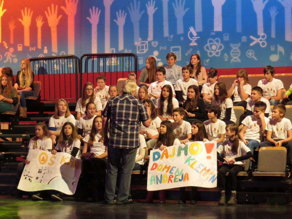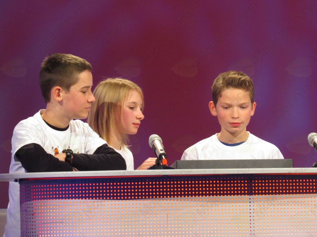 Našo skupino smo sestavljali Domen, Klemen in jaz, drugo pa Manca, Tinkara in Lucija. V Kopru smo si najprej ogledali šolo, nato pa smo pisali test. Zame je bil skorajda enostaven. Nato so sledili rezultati, ki so razkrili, katerih osem ekip bo izmed okrog petdesetih sodelovalo v slušnem delu. Osmi so bili tekmovalci z Mosta na Soči, sedmi iz Prad, šesti iz Hrvatinov, peti iz Deskel, četrti z OŠ Frana Erjavca iz Nove Gorice, tretji smo bili mi, drugi so bili tekmovalci iz Solkana, prvo mesto pa je zasedla ekipa iz OŠ Šturje. Mi smo se v slušnem delu pomerili s Hrvatini. Bilo je napeto. Zmagali smo in to je pomenilo, da gremo v RTV studio v Ljubljano. Bili smo veseli in presenečeni. 17. 9. je bil za nas srečen dan.