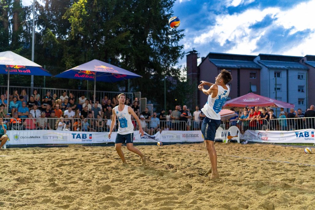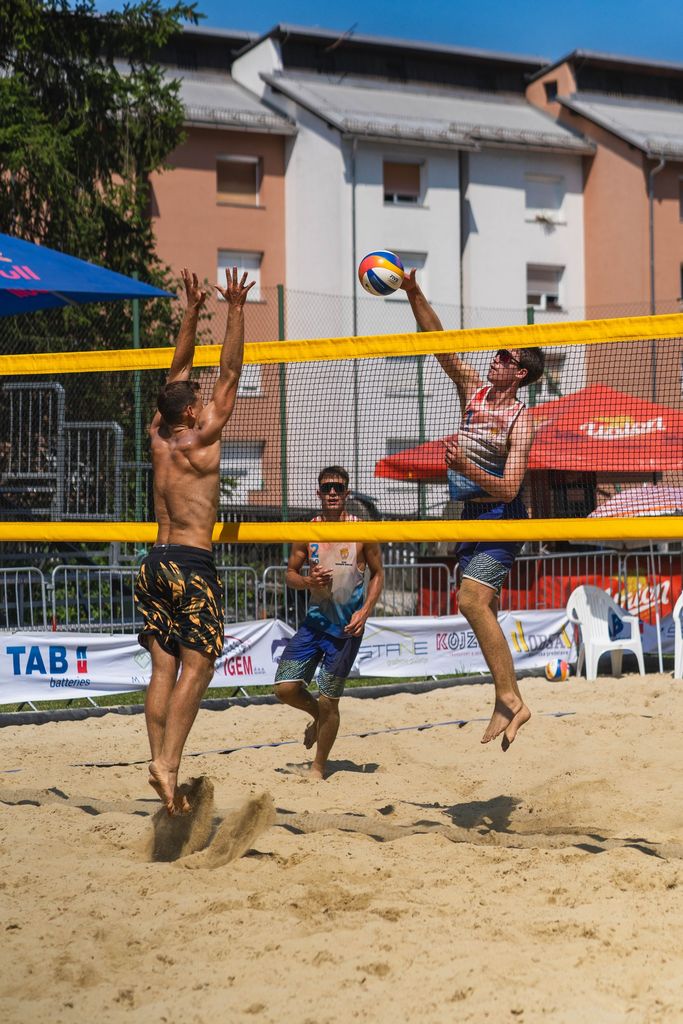 "Državno prvenstvo v odbojki na mivki z 19 moškimi in 8 ženskimi dvojicami se je začelo s četrtkovimi kvalifikacijami za moške, v katerih je igralo 11 ekip, nastop v glavnem delu tekmovanja pa so si priigrali Miha Kosanc in Benjamin Mugerli, Erik Černač in Martin Veber, Miha Bregar in Jaka Jevšnik ter Stefan Radovanović in Nace Prevorčnik.