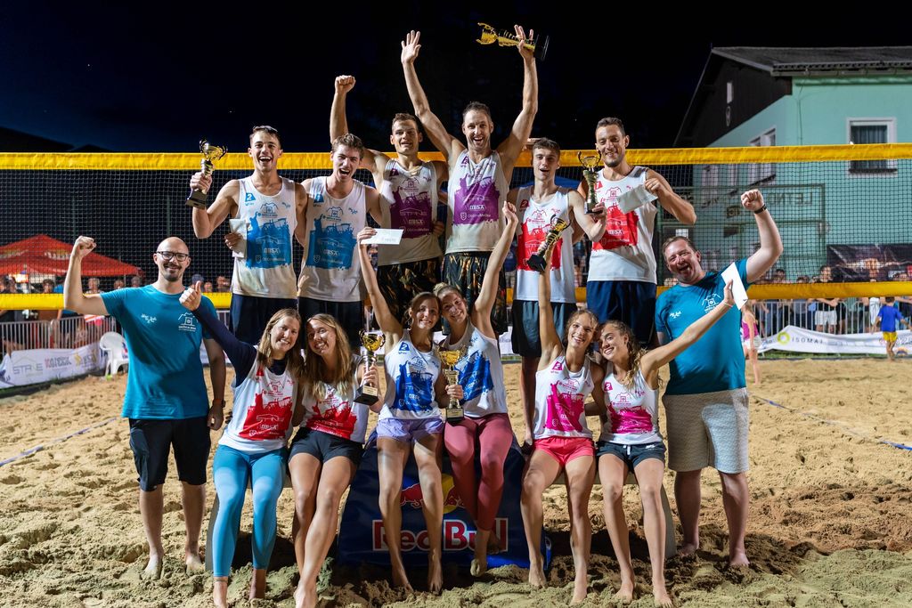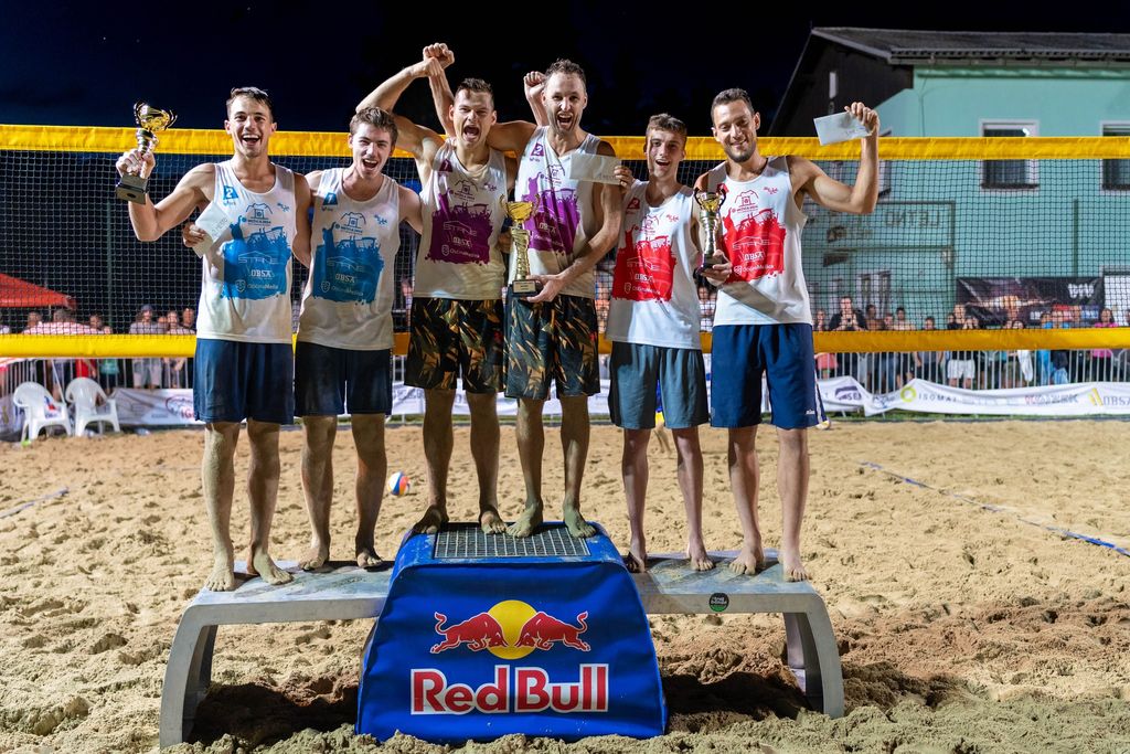 Slednja sta se v sobotnem polfinalu ubpomerila z Boženkom in Zemljakom in pripravila presenečenje ter se veselila zmage z 21:19 in 21:13. Uvrstitev v finale sta si zagotovila še prva favorita prvenstva Pokeršnik in Šen, ki sta po hudem boju, s 26:24 in 21:16, odpravila Bregarja in Jevšnika. Bronasto odličje je nato pripadlo Bregarju in Jevšniku, ki sta bila od Boženka in Zemljaka boljša z 21:18 in 21:15. Tudi finale je bil zaključen po dveh nizih, v katerih sta Pokeršnik in Šen z 21:14 in 21:17 strla odpor Kosanca in Mugerlija."