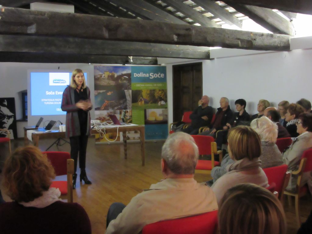 Občina Kanal ob Soči je v sredo, 20. novembra 2019, v Gotski hiši v Kanalu organizirala delavnico z namenom priprave strategije razvoja in trženja turizma v dolini Soče 2025+. Občina se je pridružila k skupni pripravi strategije razvoja turizma in trženja Dolini Soče, saj se vsebinsko dopolnjujemo in projektno že sodelujemo. Delavnice se je udeležilo 30 pomembnih turističnih akterjev iz občine Kanal ob Soči (turistična društva, ponudniki nastanitev, gostinski ponudniki, PD Soča kot upravljavec kulturnih objektov na Kontradi, predstavnica čebelarskega društva ČD Brda Kanal, sirarna Kanal, predstavnik SENG, turistični vodniki …). Delavnico so vodili zunanji strokovnjaki: Slavka Zupan (K&Z, Svetovanje za razvoj d.o.o.), Neja Petek in Petra Gonelli (Nea Culpa, Agencija za razvoj in marketing v turizmu) in Jan Klavora (Goodplace d.o.o.).