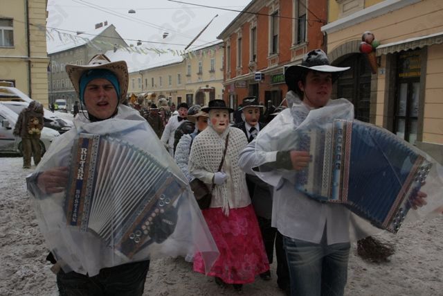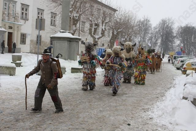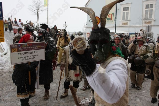 Nato pa se je povorka začela počasi premikati proti glavnemu prizorišču. Škoda, ker je bilo manj ljudi, kot običajno, saj jih je doma zadržalo grdo vreme. Kdor pa je prišel, se je v družbi razposajenih pustov zagotovo nazabaval. Med pusti, ki jih na naših povorkah redkeje vidimo, omenimo belgijske Divje prašiče, sardske Urthose in Buttudose, tradicionalne japonske maske iz 17. stoletja, pa bolgarske puste, in seveda množico slovenskih tradicionalnih pustov.