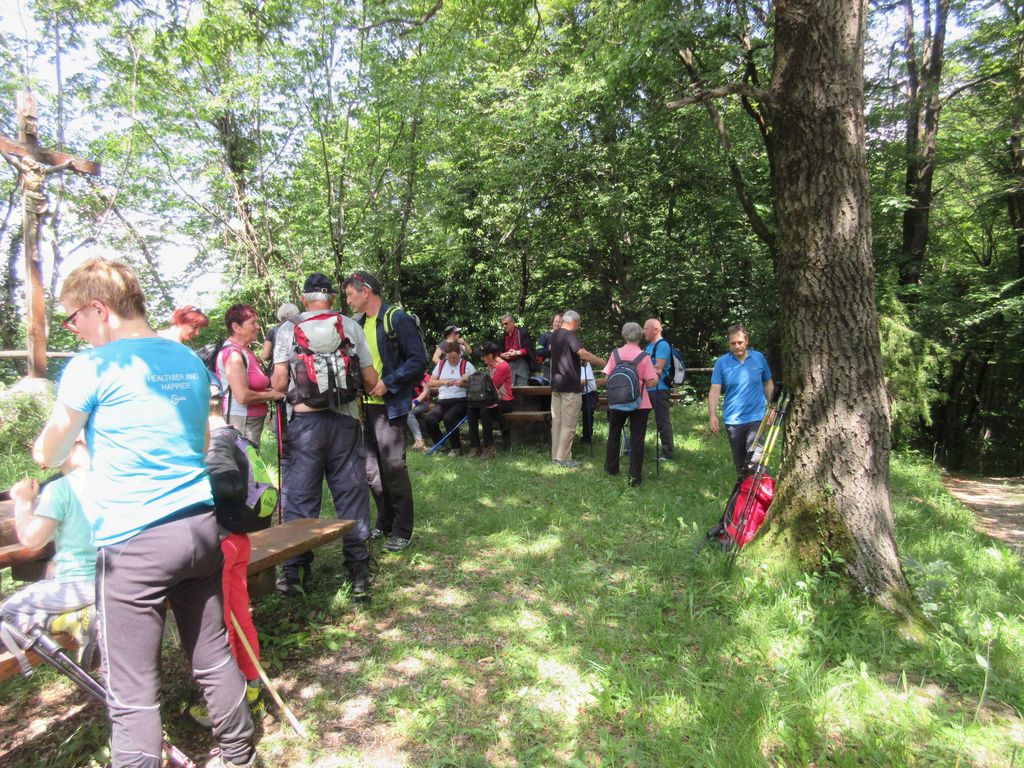 Med kratkimi Valterjevimi razlagami na posameznih točkah poti in med prijetnim klepetom je pot kar hitro minila. Okrepitev s čajem pri sv. Kvirinu nam je olajšala spust. Še kratka razlaga in ogled cerkvice sv. Alojzija in že smo se odpravili proti cilju, kjer nas je čakala jota.