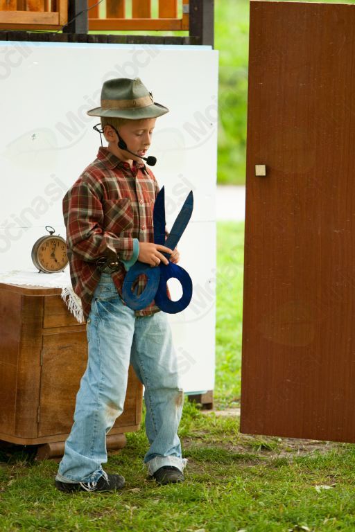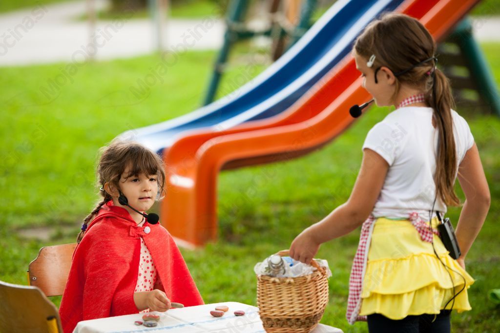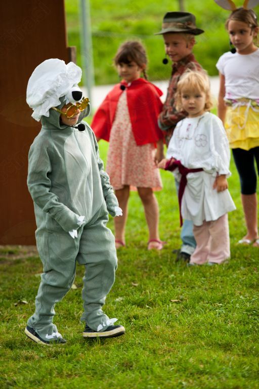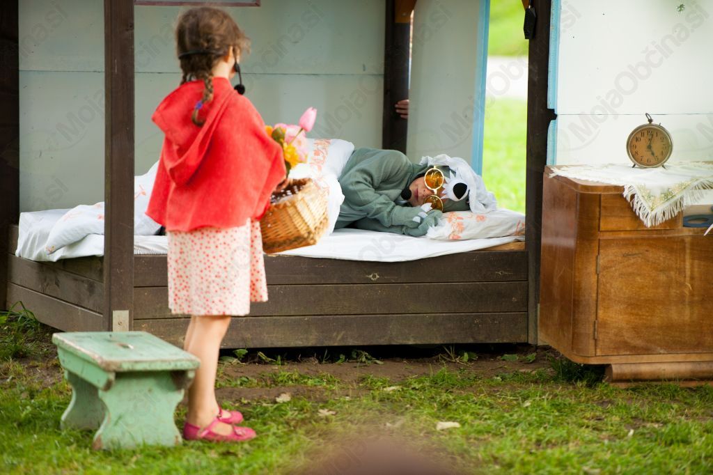 Najstarejši, devetletni igralec Tomi Valentinčič je odigral lovca, leto mlajša Nina Petrevčič se je poskusila kar v treh vlogah. Odlično je odigrala je mamo, srnico in metulja. Skoraj šestletna Lara Bucik je nastopila kot Rdeča kapica, petletni Anej Petrevčič pa se je več kot prepričljivo prelevil v volka. V babico se je preoblekla komaj triletna Neža Bucik in dodobra nasmejala občinstvo, štiriletna Ula Bednarik in triletna Ana Petrevčič pa sta nastopili v vlogi zajčkov. Ne smemo pozabiti tudi ostalih otrok na Kanalskem Vrhu (Erazem Bucik, Blaž Humar, Klara Humar, Mia Petrevčič in David Bucik), ki so nastopajoče vsak dan bodrili na vajah ali pa s svojo pridnostjo pomagali, da so igralci lahko v miru vadili. Otroci so skupaj z mamami na dopoldanskih delavnicah izdelali tudi večino rekvizitov, za težja scenska dela pa so na pomoč priskočili očetje. In ko so v nedeljo popoldne pripeljali še čisto prave zvočnike in igralcem nadeli naglavne mikrofone, so širokih nasmehov vsi prvič doživeli igralski krst. Aplavz na koncu je bil bučen!