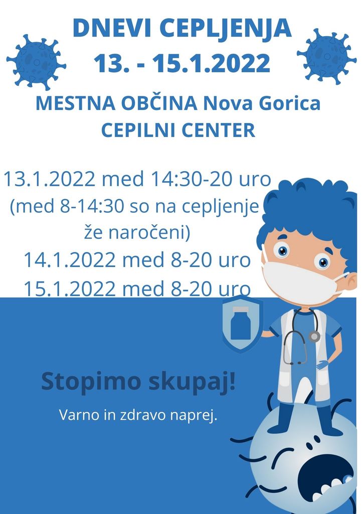 DNEVI CEPLJENJA med 13. in 15. 1. 2022 v cepilnem centru v Novi Gorici