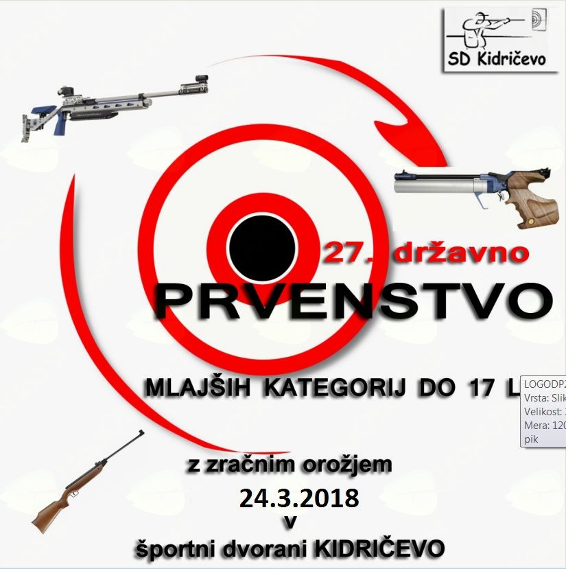 V skladu s koledarjem Strelske zveze Slovenije bo Strelsko društvo KIDRIČEVO v soboto, 24.3.2017 in v nedeljo, 25.3.2017 v športni dvorani Kidričevo organiziralo 27. Državno prvenstvo 2018 v streljanju z zračnim orožjem za tekmovalce do 17 let.