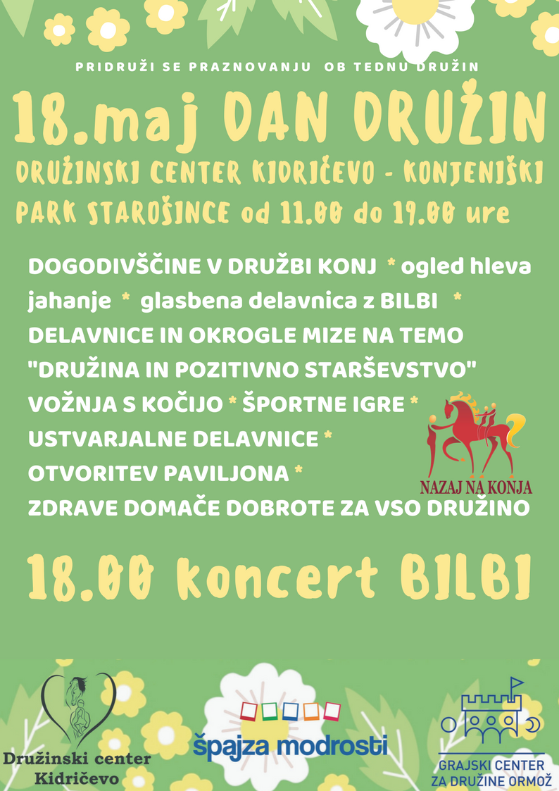 Ker je to dober razlog za praznovanje vas vabimo, da se udeležite dogodka, ki smo ga poimenovali DAN DRUŽIN.