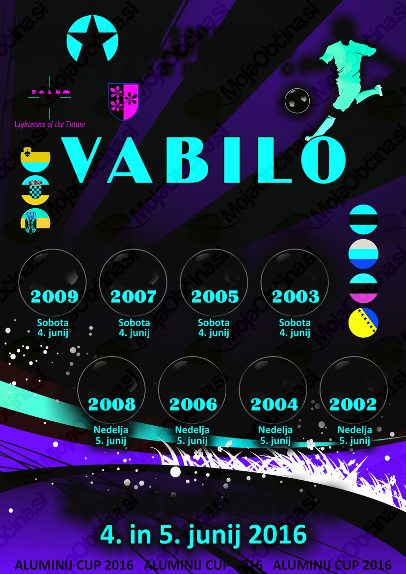 Nogometni klub Aluminij vas vabi na ogled mednarodnega nogometnega otroškega turnirja za starostne kategorije od 7.leta do 14. leta starosti. Na turnirju bo v dveh dneh sodelovalo preko 100 ekip iz štirih držav, kar pomeni cca. 1200 mladih nogometašev. iz Slovenije, Hrvaške BiH in Srbije.