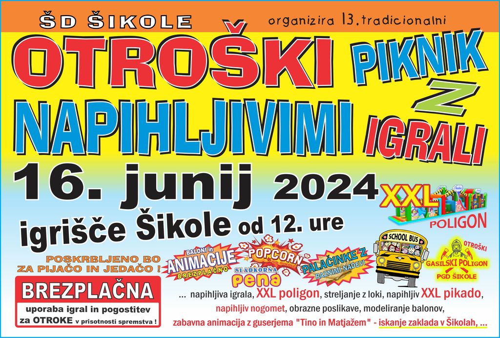 OTROŠKI PIKNIK Z NAPIHLJIVIMI IGRALI „ŠD ŠIKOLE 2024"