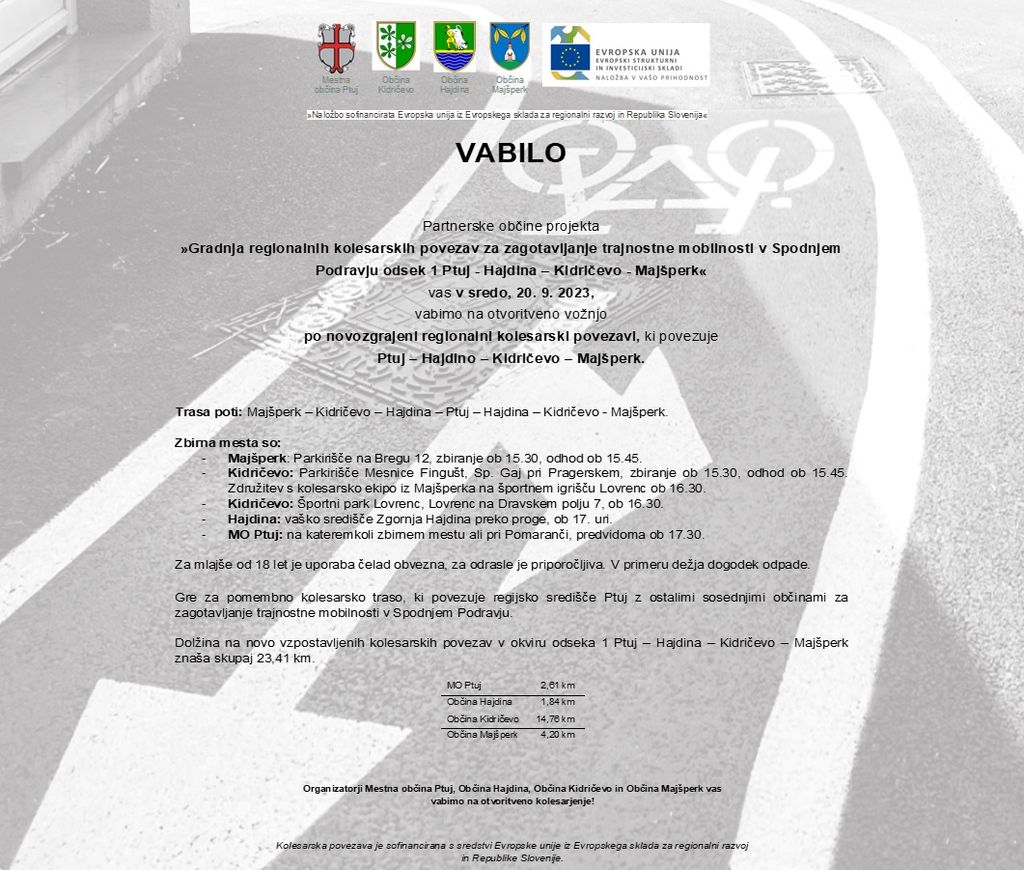 Organizatorji Mestna občina Ptuj, Občina Hajdina, Občina Kidričevo in Občina Majšperk vas vabimo na otvoritveno kolesarjenje!