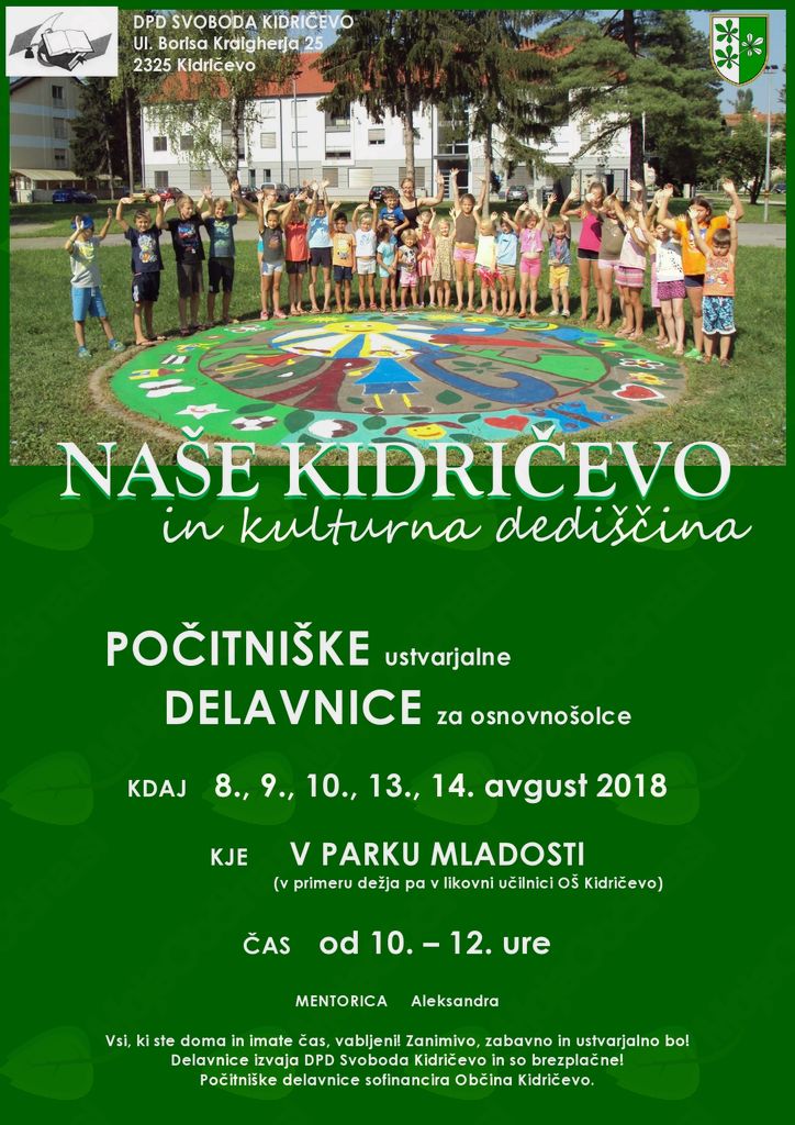 Vabljeni na počitniške ustvarjalne delavnice "Naše Kidričevo in kulturna dediščina".