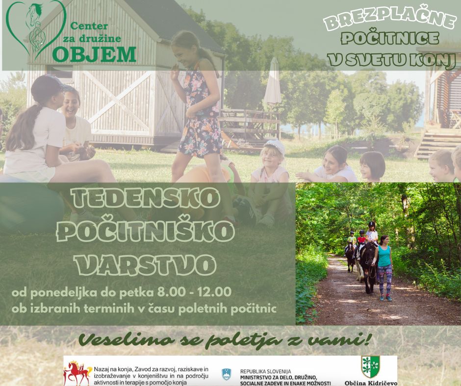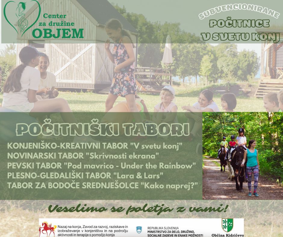 Vse podrobnosti in dodatne informacije najdete med aktualnimi novicami na naši spletni strani www.nakonju.si/center_objem/novice/329/poletne_pocitnice_za_uporabnike_centra_za_druzine_objem/