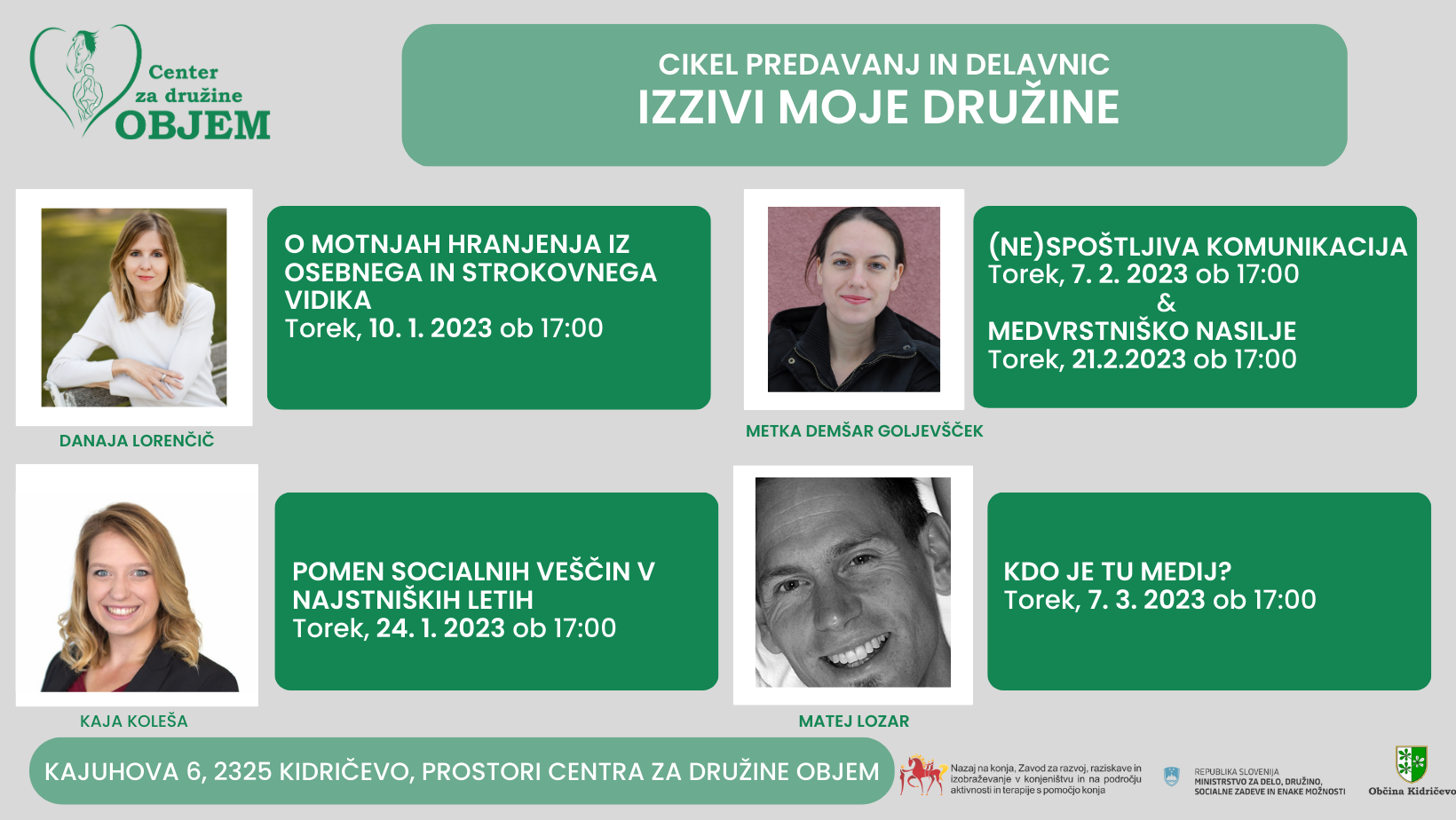 V ciklu "Izzivi moje družine 2023" se bomo posvetili temam, ki osvetljujejo največje nevarnosti in pasti, s katerimi se soočajo naši otroci in mladostniki.