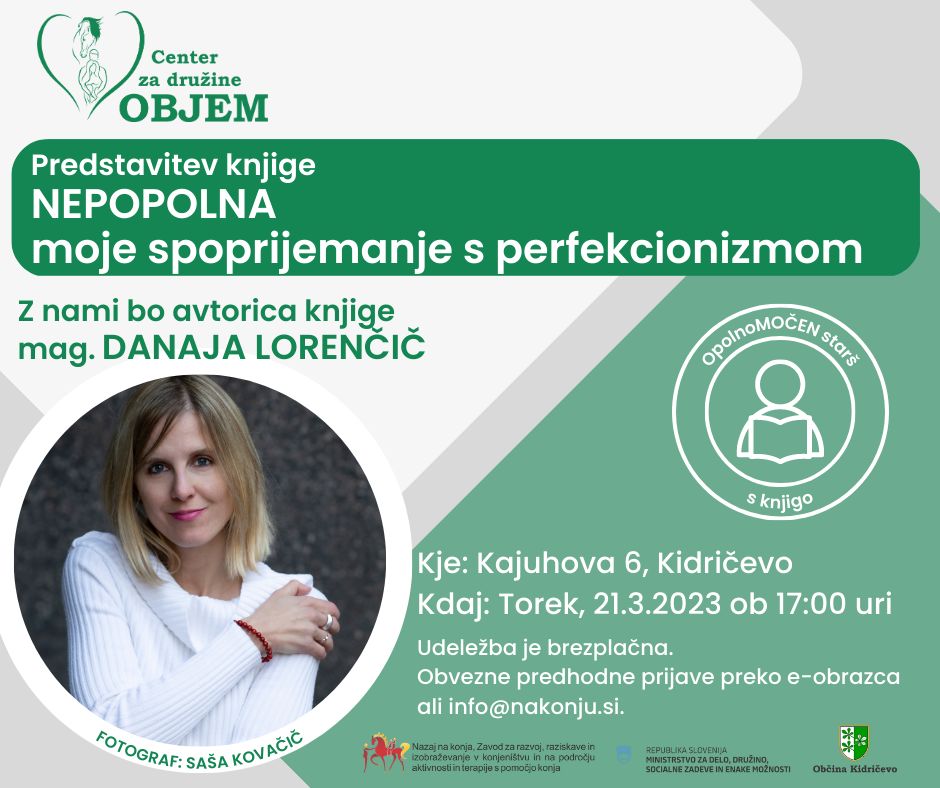 Zato smo na srečanje naše podporne skupine tokrat povabili posebno gostjo: z nami bo sociologinja, novinarka in izvrstna pisateljica mag. Danaja Lorencic, ki je tudi avtorica letošnje knjižne uspešnice, "NEPOPOLNA - moje spoprijemanje s perfekcionizmom".