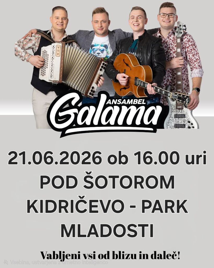 V sklopu 29. praznika občine Kidričevo, Prostovoljno gasilsko društvo Starošince organizira veselico z ansamblom GALAMA! 🪗🎸🎺