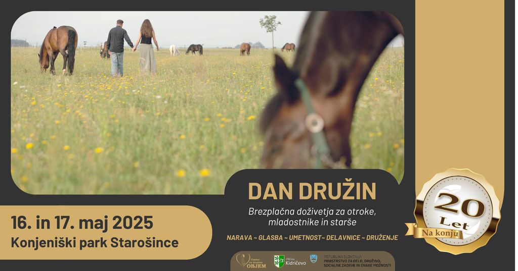 Na stojnicah se bodo predstavile različne organizacije, ki se posvečajo ljudem, družinam, otrokom in mladim. Poleg našega centra za družine OBJEM se bodo predstavili tudi nekateri drugi slovenski centri za družine, ki izvajajo brezplačne vsebine in programe, različni lokalni ponudniki ter jezikovna šola Helen Doron English Ptuj. Za vas pripravljamo različne aktivnosti za vso družino, družinske ustvarjalne delavnice, predavanja in okrogle mize na temo starševstva ter zanimive delavnice za otroke in mlade. To bo tudi odlična priložnost za vse, ki se želite srečati s konji in spoznati njihov vsakdan, saj bodo organizirani vodeni ogledi konjeniškega parka. Za vas pripravljamo nekaj kulturno-umetniških poslastic z odličnimi glasbenimi gosti, zato vas vabimo, da v prihodnjih tednih spremljate napovednike.