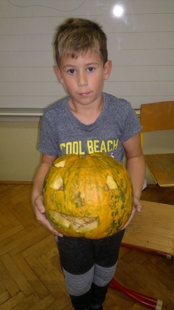 V mesecu oktobru smo se v podaljšanem bivanju posvetili temi jesen. Na začetku meseca smo si izdelali lutko – jesenski pridelek. Zbirali smo lahko med koruzo, bučo, korenjem in krompirjem. Za izdelavo le-te, smo potrebovali šeleshamer in rafijo. Kasneje smo slikali na temo vinograd in sadovnjak. Odšli smo v gozd in nabrali storže, palice ter lubje. Izdelali smo si veliko izdelkov. Na začetku smo si izdelali viseče storže. Nato smo lubje odeli v raznobarvne vzorce s pomočjo tempera barv. Imeli smo tudi delavnico na prostem, kjer so si lahko vsi učenci od 1. do 5. razreda izdelali gozdne vile. Proti koncu meseca, ko se je bližala noč čarovnic, si je vsak učenec izdelal netopirja, duhca in bučo iz papirja. Najbolj smo bili navdušeni nad pravo poljsko bučo, saj smo jo spremenili v laterno in pri tem neznansko uživali. Sami smo jo izrezali in otrebili. Semena smo sušili na okenski polici in jih z užitkom poskusili. Ker nam je vreme prineslo poletne temperature, smo bili veliko zunaj, kjer smo igrali razne športe. Preizkusili smo se v nogometu, košarki in med dvema ognjema. Pri sklopu varnost smo spoznavali prometne znake in se jih naučili ločiti po obliki in barvi. Veliko časa smo posvečali prehrani in predvsem bontonu. Pri vseh opravilih smo se zelo zabavali.