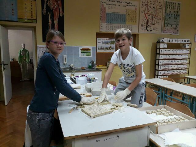 Vrnili so se učenci, šolski utrip in prve nove ideje. Odločili smo se, da bomo izdelovali milo. Takoj nam je na pomoč priskočila učiteljica kemije ga. Valerija Krivec. Milo smo nato izdelovali skupaj z devetošolci pri kemiji. Sama izdelava mila je dokaj preprosta, a zahteva natančno in previdno delo, da ne pride do poškodb. Pri delu smo upoštevali vsa varnostna navodila in uporabljali očala, rokavice, prezračili prostor in kožo rok zaščitili z dolgimi rokavi. Natrijev hidroksid, ki je nepogrešljiva sestavina mila, je namreč izredno bazičen in lahko v stiku s kožo povzroči resne razjede, na očeh pa hude poškodbe. V zmes smo zraven ostalih sestavin dodali cvetove sivke in njeno eterično olje. Nato smo jo ulili v kalupe in jo naslednje jutro razrezali na kose želene velikosti, ostanke pa oblikovali z modelčki. Tako pripravljeno milo mora zoreti in se ob večkratnem obračanju sušiti vsaj pet do šest tednov. V tem času se »izluži«, nevtralizira bazično delovanje natrijevega hidroksida in milo je pripravljeno za uporabo.