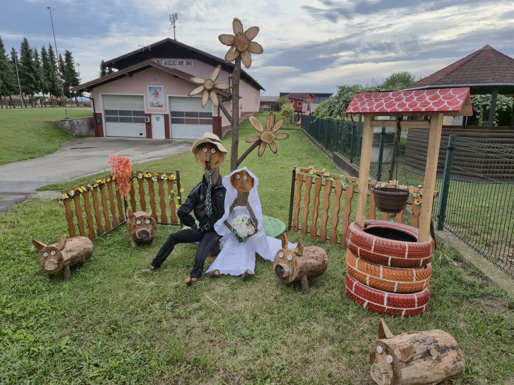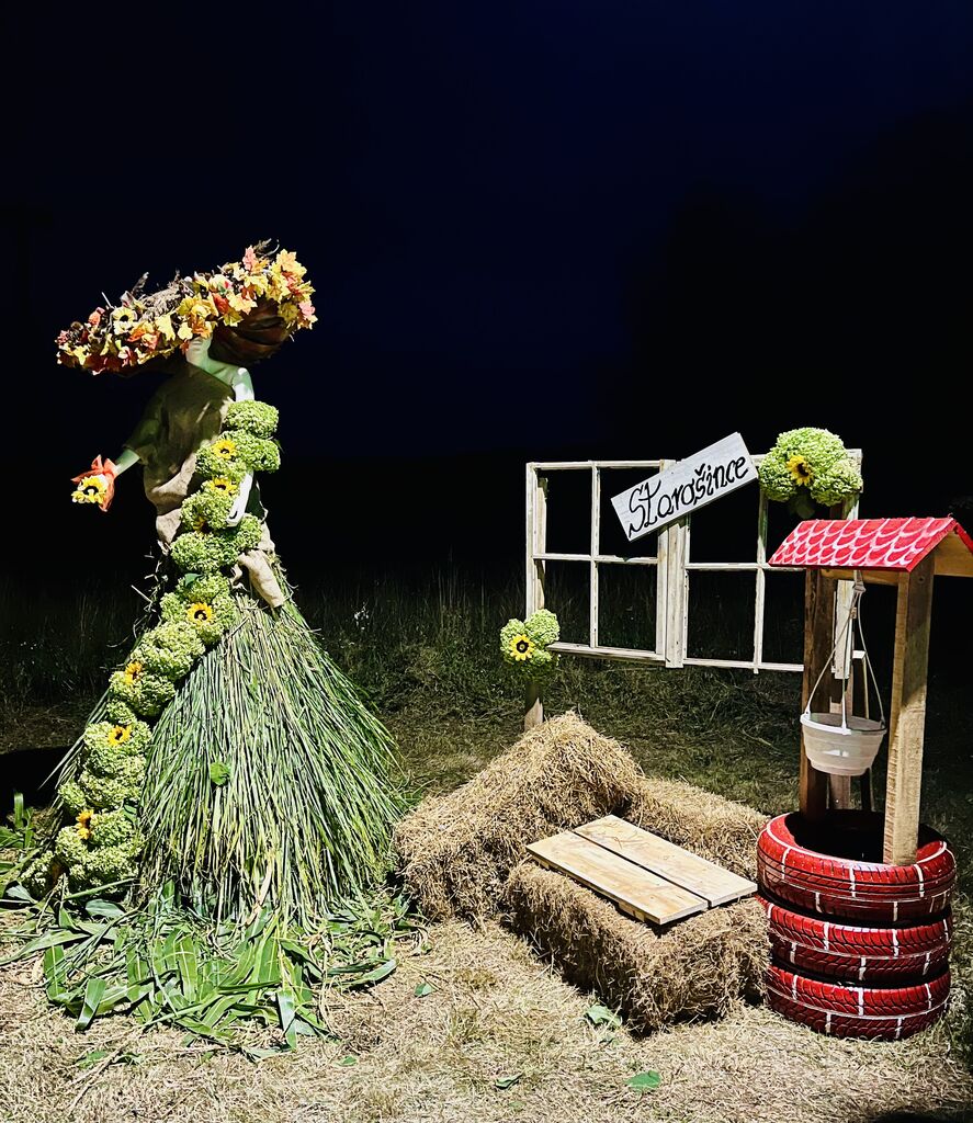 Kot že vrsto let nas tudi letos na znanem ovinku ob cesti prijazno pozdravlja tetka Jesen, obdana z darovi narave, ki nas spomnijo na obilje in hvaležnost za preteklo leto. Pri gasilskem domu pa obiskovalce čaka prava posebnost – uprizoritev poroke iz starih časov, kjer ženin in nevesta posedata na svoji kmetiji. S pridihom tradicije nas spominjata, kako so se nekoč veselili in družili naši predniki.