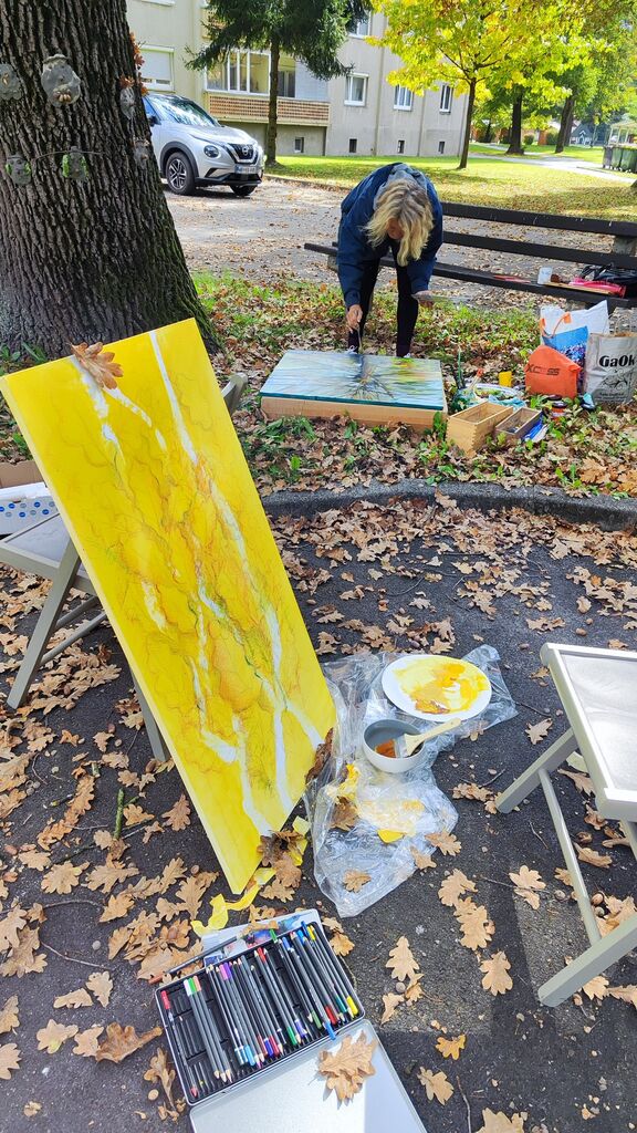 Čas teče. Menjujejo se leta, letni časi in dnevi ter prihajajo novi motivi. Kidričevo s svojo umeščenostjo v gozd, obdan z ravnico Dravskega polja, se spreminja v času, dobiva novo podobo, a hkrati ohranja svojo spomeniško vrednost, povezanost z industrijo aluminija. Naselje se širi, prihajajo novi obrazi, nekateri odhajajo. Spremembe so stalnica, ki jih moramo sprejeti in ravno jesen ujame vse te spreminjajoče se trenutke. Ravno takrat, ko je narava v izbruhu svojih najmočnejših barv in sadov, se barve umirijo in izgubijo svojo nasičenost. Barvna paleta se pomeša v neskončnih zemeljskih odtenkih, se zavije v sivino razpadajoče minljivosti in potem se ponovno prebuja. Vse to smo skušali ujeti na naša slikarska platna.