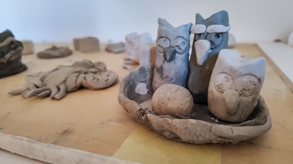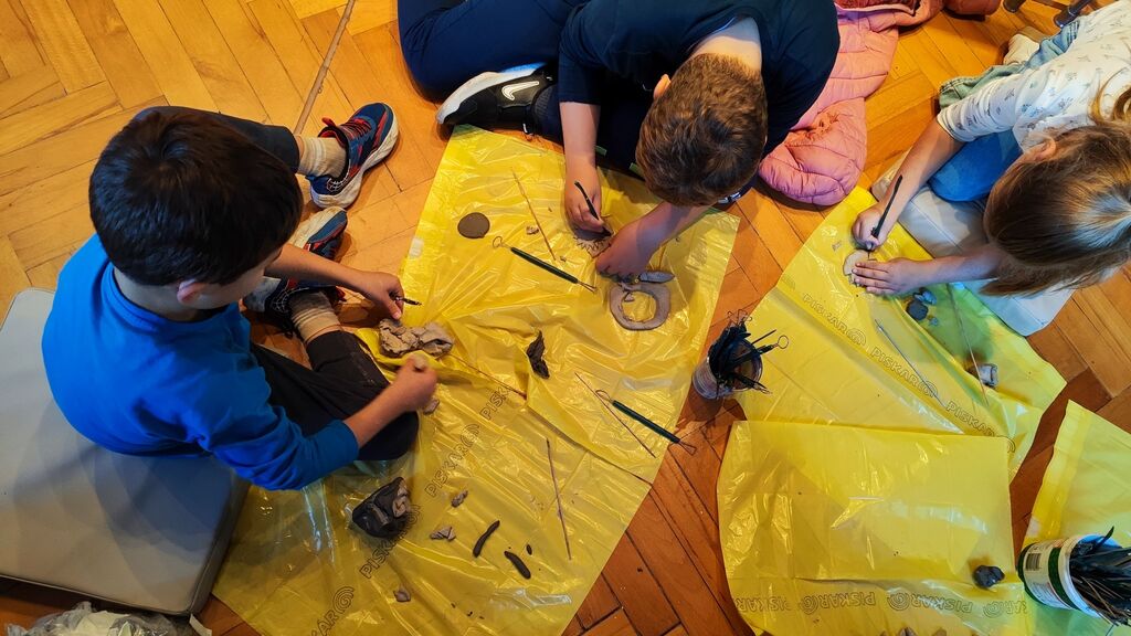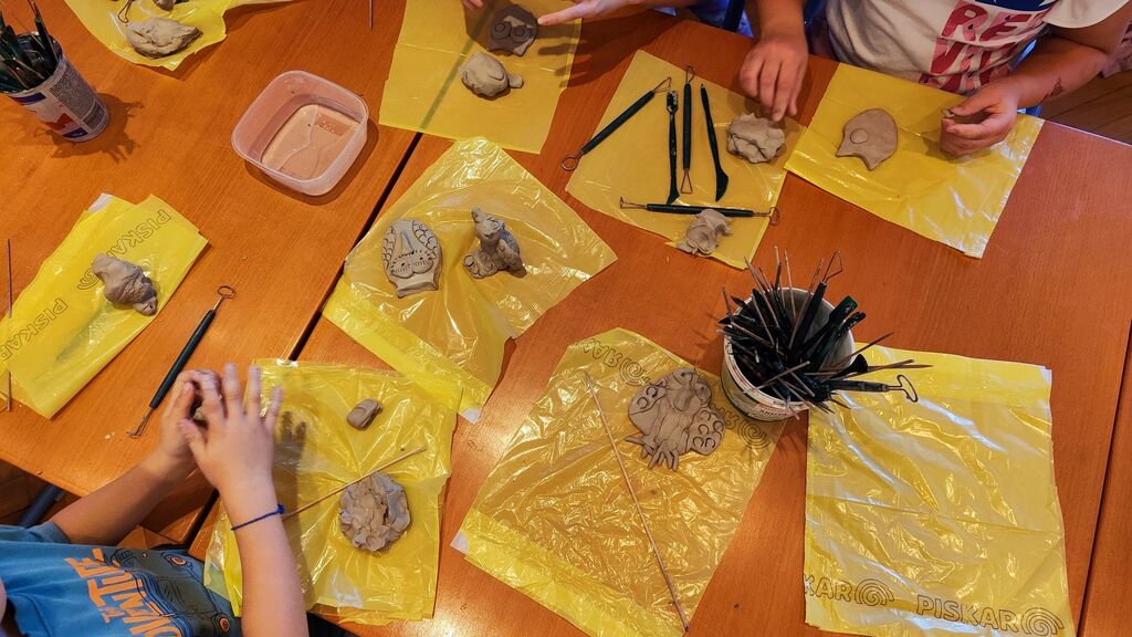 Letos smo ob Tednu otroka za osnovnošolce v naši društveni knjižnici pripravili delavnice oblikovanja z glino. Oblikovali so živalsko in človeško figuro ter okrasne predmete. Z oblikovanjem gline pa se v oktobru in novembru srečujejo tudi odrasli likovniki, ki v glini najdejo sprostitev ter tako oblikujejo različne kiparske oblike uporabnih in okrasnih vrednosti.