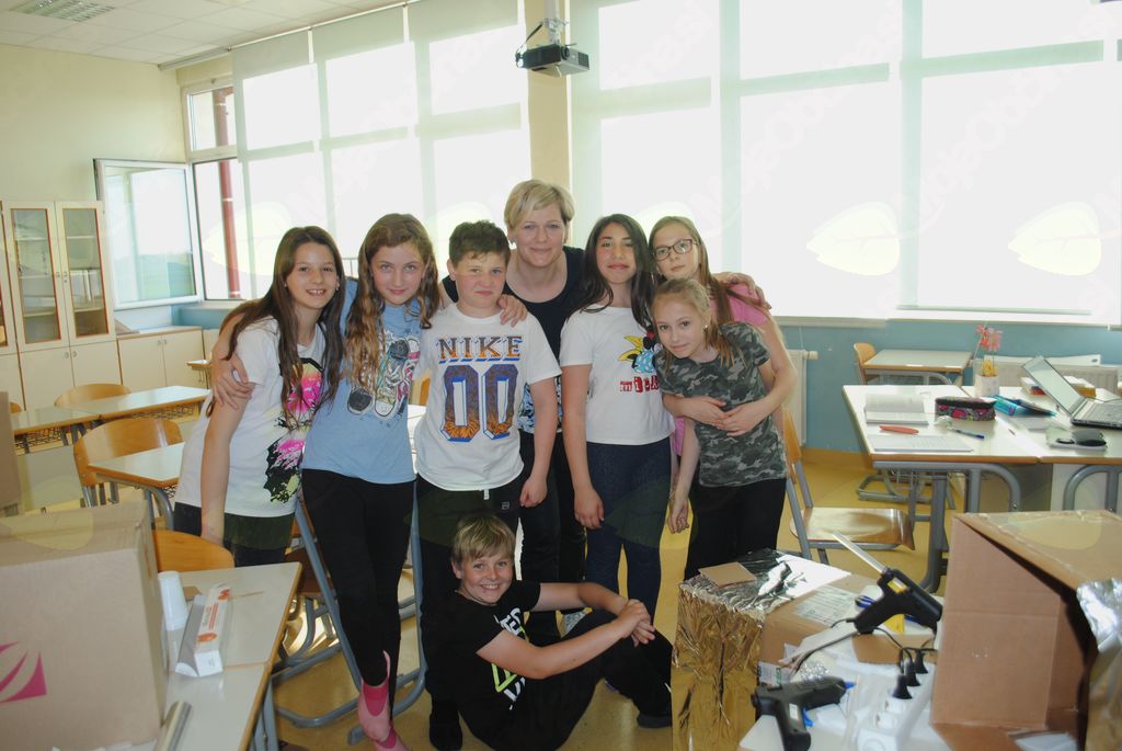 V dramski ustvarjalnici pa smo si za osnovo vzeli knjigo Pika in hišni robot xy-13. Prebrali smo odlomek iz knjige in se pogovorili o vsebini. Delček smo odigrali in ugotovili, kako lepo bilo, če bi tudi na šoli imeli kakšnega robota – in tako smo ga izdelali in mu dali ime Šolko 2018.