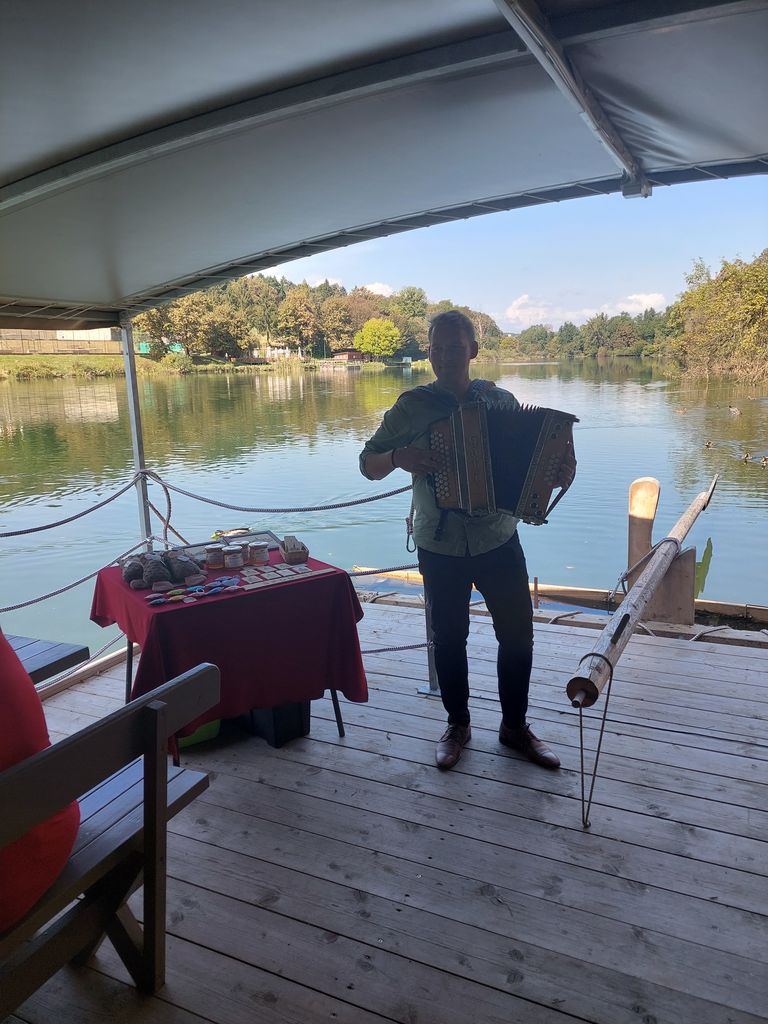 Pot smo nadaljevali do Novega mesta, kjer smo se vkrcali na Rudolfov splav. Vožnja po okljuku reke Krke je bila zelo zabavna, za kar so poskrbeli spretni animatorji. Obenem so nam postregli z okusno pogačo in avtohtonim cvičkom. Našo Karmen so tudi svečano sprejeli med Rudolfove splavarje, saj je z odliko opravila vse zastavljene naloge s pomočjo botra Slavka.