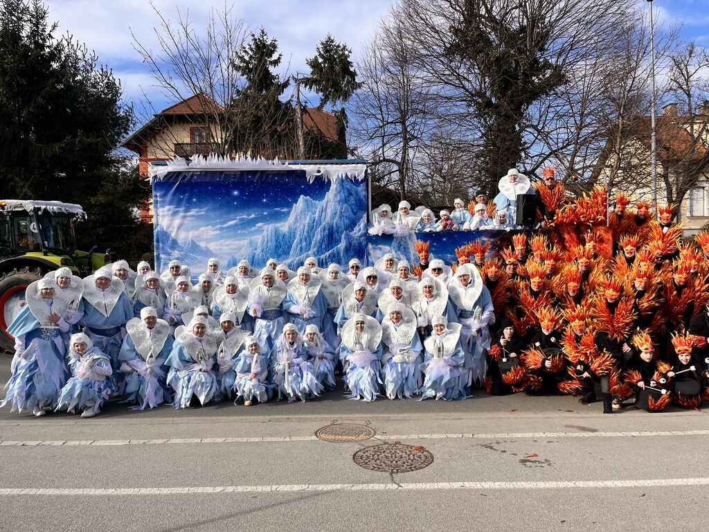 Kulturno umetniško društvo Vetrnice smo letos na pustnem karnevalu predstavljali vizualno pretresljivo in globoko izpovedno zgodbo z naslovom Ogenj in led.
