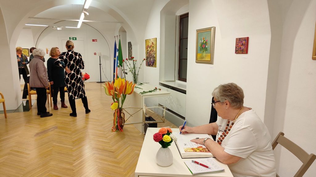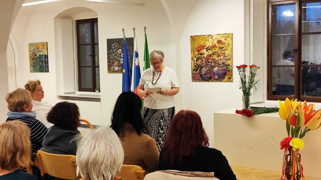 Likovno besedo o delih je podala vodja likovne sekcije, ga. Aleksandra Vidovič. S slikami z motiviko cvetja in cvetličnega tihožitja se na svojstven izrazni način predstavlja devet članic likovne sekcije: Tina Emeršič, Lidija Hrbinič, Albina Murko, Nia Petek, Mihaela Planinšek, Irena Tušek, Aleksandra Vidovič, Neja Vogrinc in Galina Žumer.